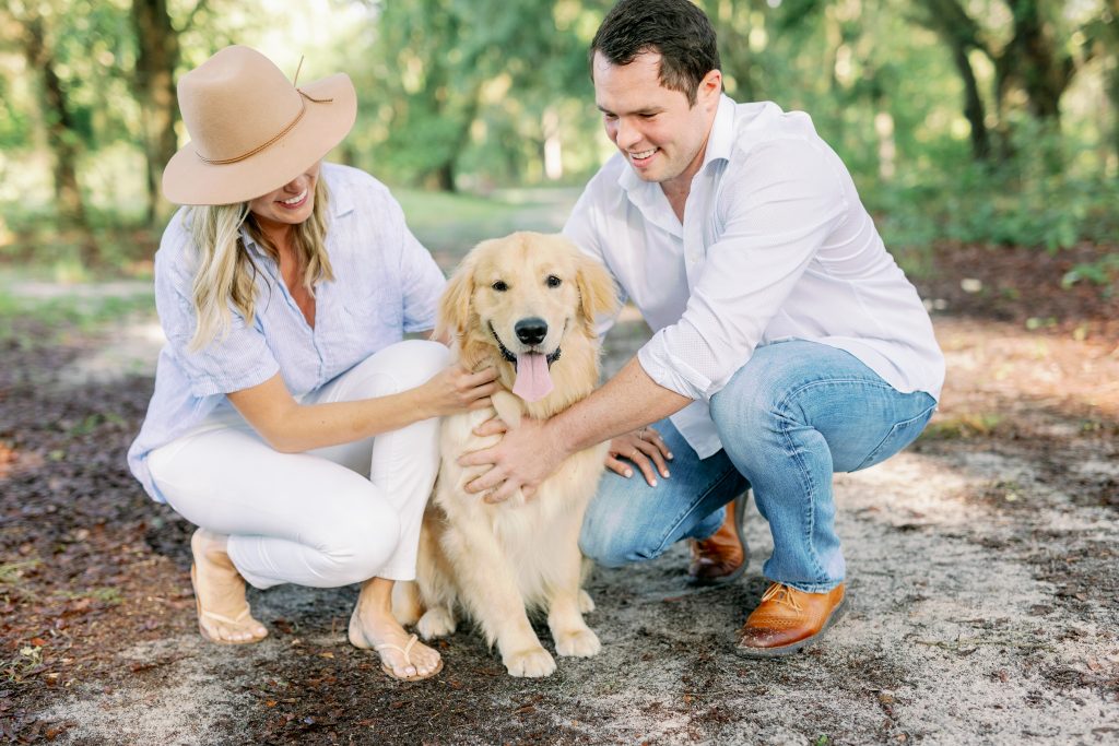 Stephanie met up with Haley, Alec and their golden retriever Ollie at Lake Louisa for their engagement session. When our couples book, we like to ask them a few questions about their relationship! I loved their answers, so I’m going to share them below!