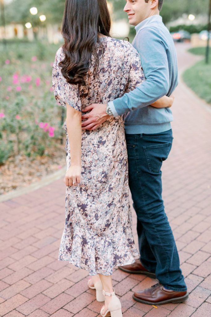 They live just a mile away from Rollins College, so it seemed like the perfect spot to celebrate their engagement session, right by where they call home! Every couple is different and when taking their engagement photos I often ask do you have a favorite pose. For this couple they sure did, they loved doing a twirl for pictures. They did the same thing the day that they got engaged, I guess you can say it’s their thing.
