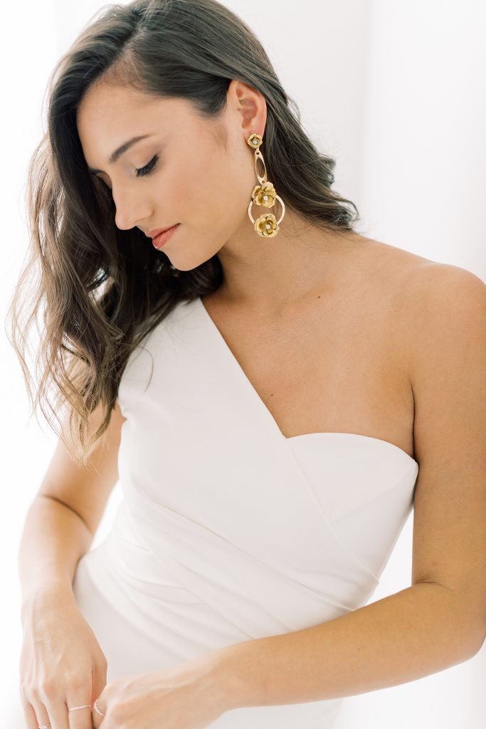 For the third look we were able to use our very own, Gabby. We kept it very simple for her look and more used this opportunity to shoot some of the Bridal Finery’s new jewelry, exclusively sold by them and created for them by Maria Elena. The fourth look included, Jennifer and her fiancรฉ Bo. We were going for a ethereal feel for this look starting with a gown with flowy sleeves and ending with a more simplistic gown with a detailed bottom.