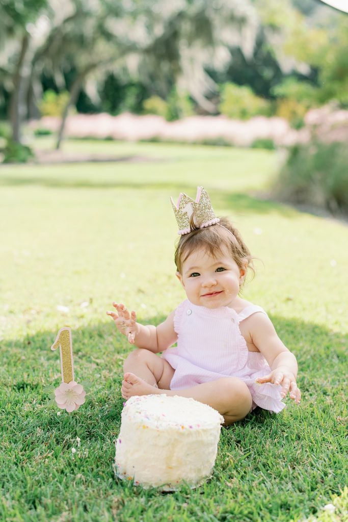 I can’t believe it’s already been a year! Grace finally gets to do her very own cake smash for her first birthday! We went and met up with Rebecca and Chris at their Winter Garden home where Grace celebrated with her parents and grandparents. They live by a little pond so we thought that would be the perfect spot to shoot.