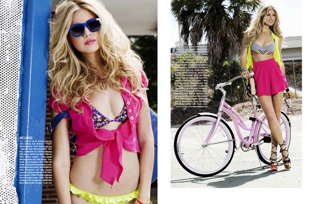 Melanie styled these looks with a flirty neon summer edge, perfect for our mean Florida heatwaves! We trolled around downtown Orlando with Patricia LeJeune close behind, making quick adjustments to Choice’s hair and makeup. We had a definite time crunch, changing looks, wardrobe and location (8 times) for this 4-spread design – and we managed to finish up in just 4 hours!