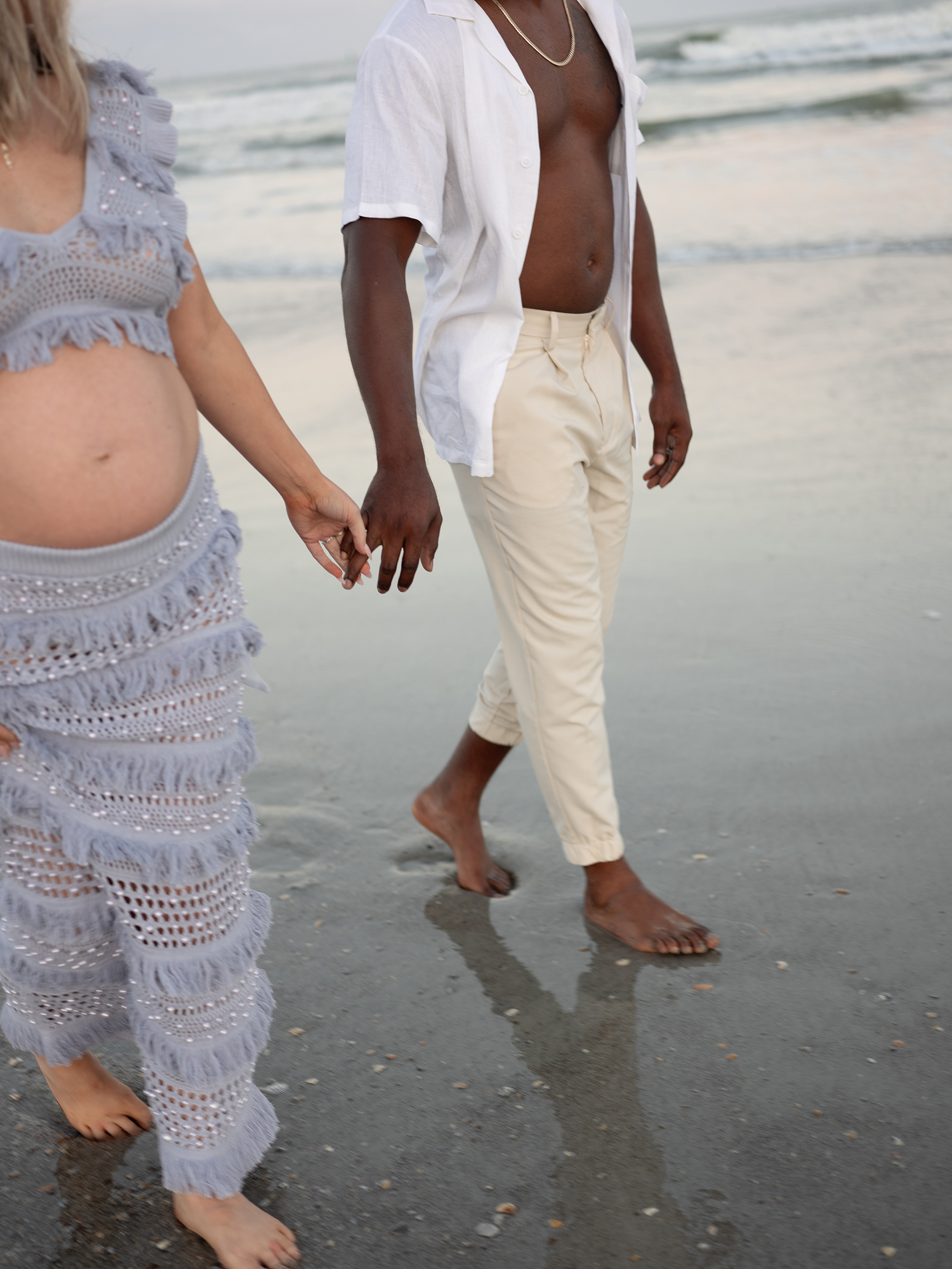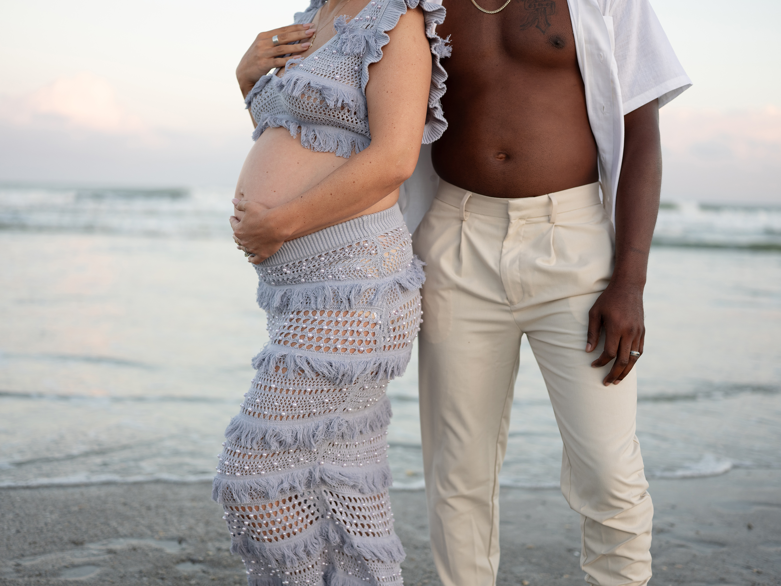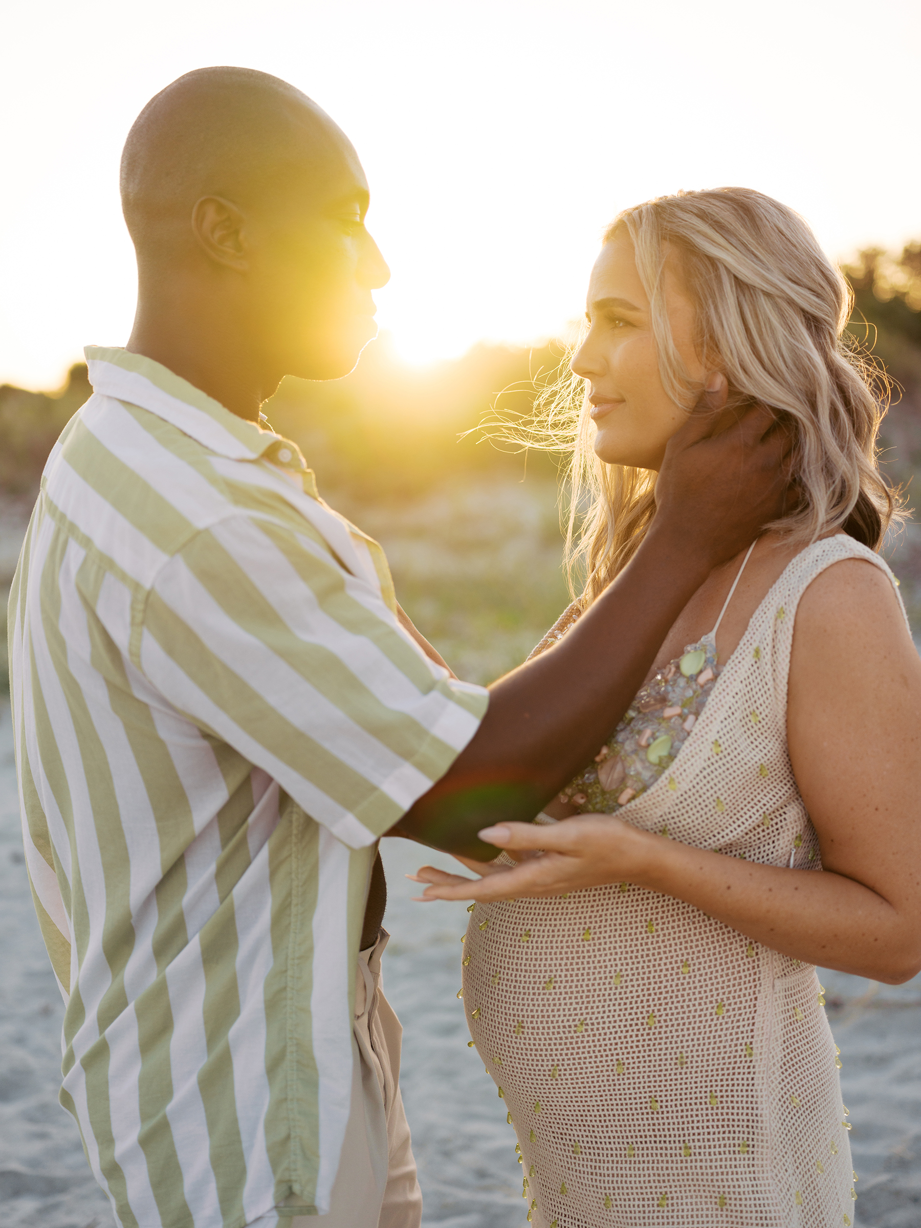 The day truly came together for Morgan and Gene’s maternity session. Unexpected details like the cruise ship passing by, a plane shining in the sun overhead, and the raw beauty of untamed water and sand, almost seemed fated to create a simple yet striking session. It was a perfect match for their modern style session, serving as a beautiful reminder of the joy of expecting their little one.