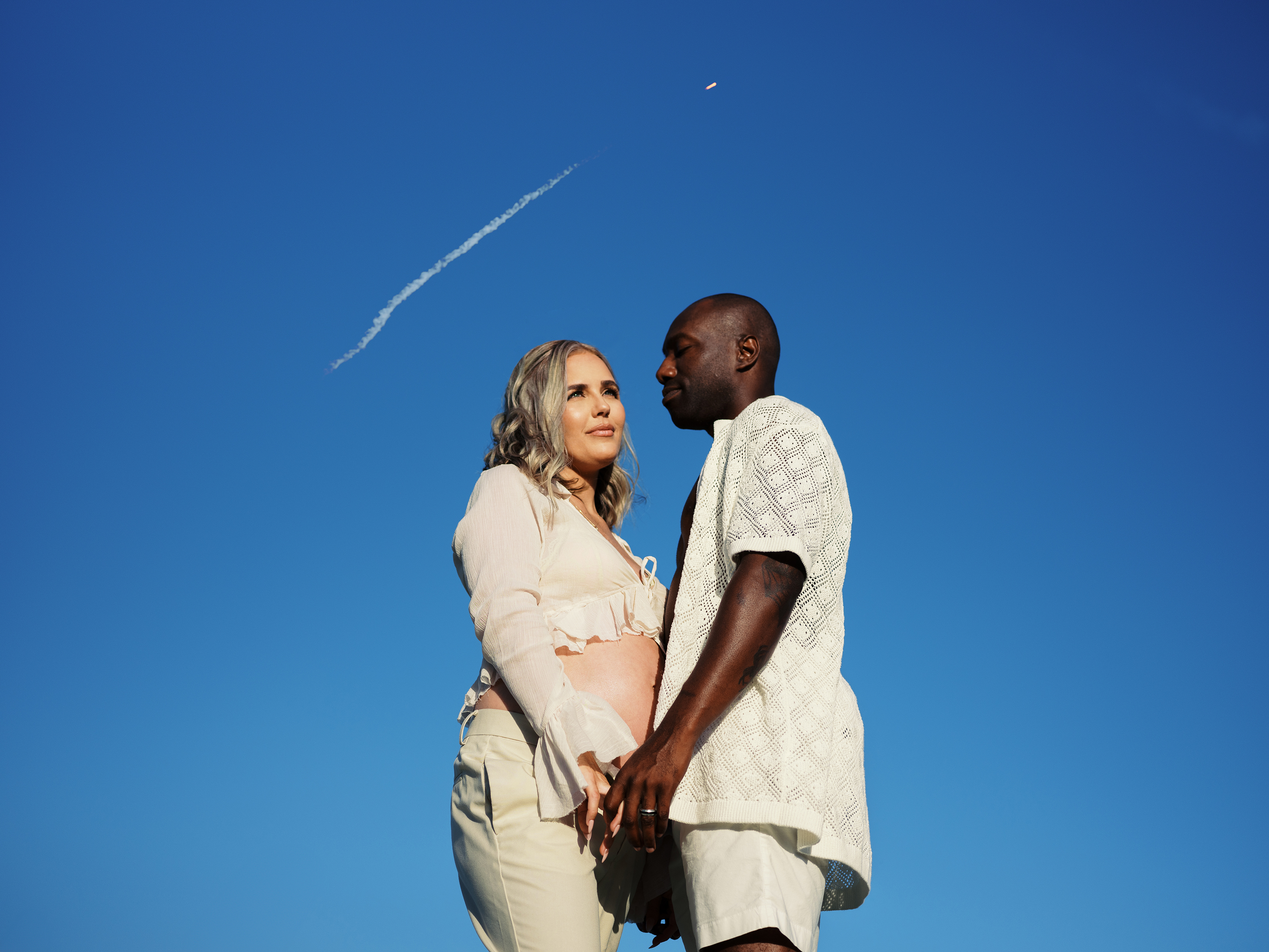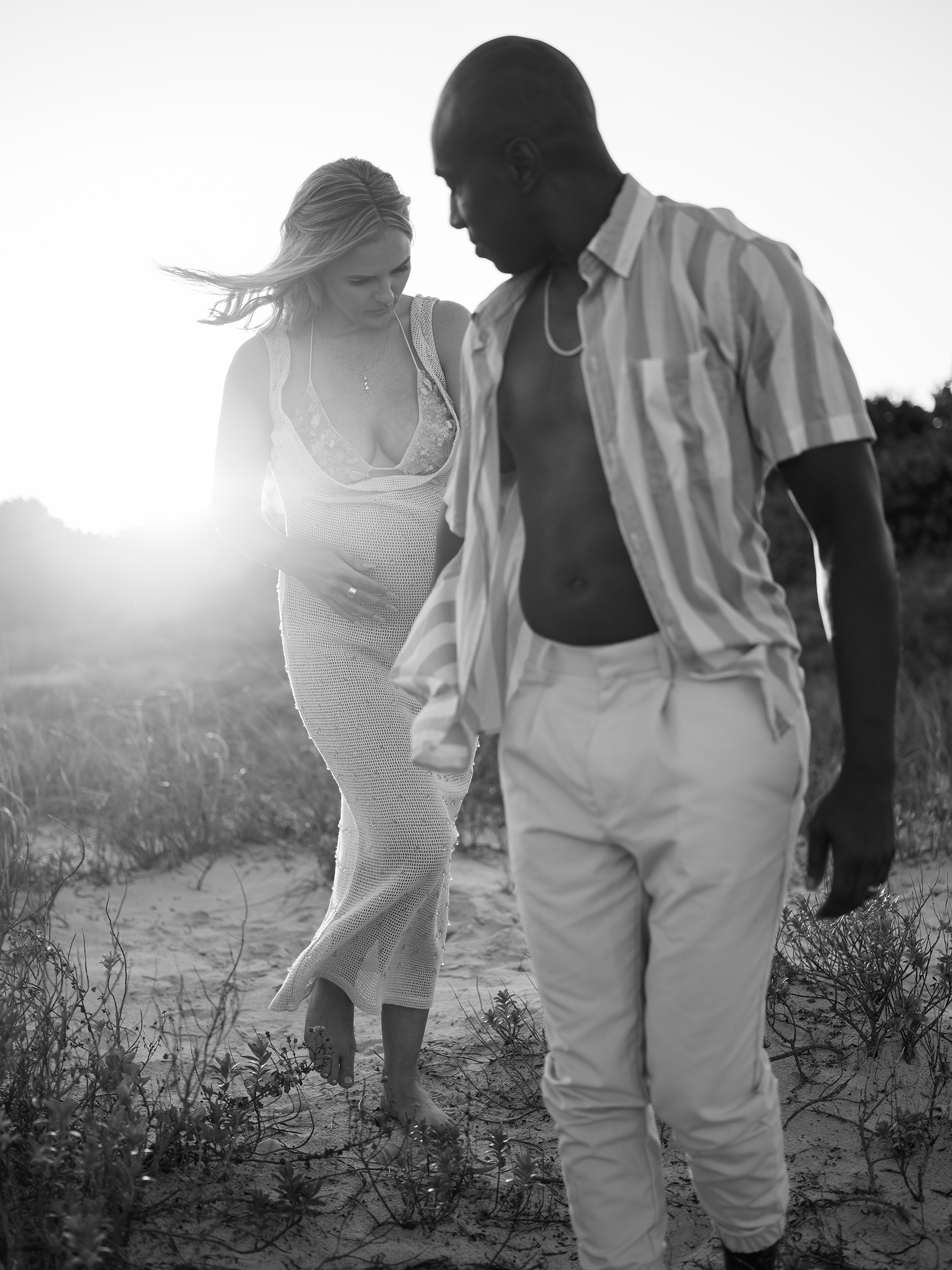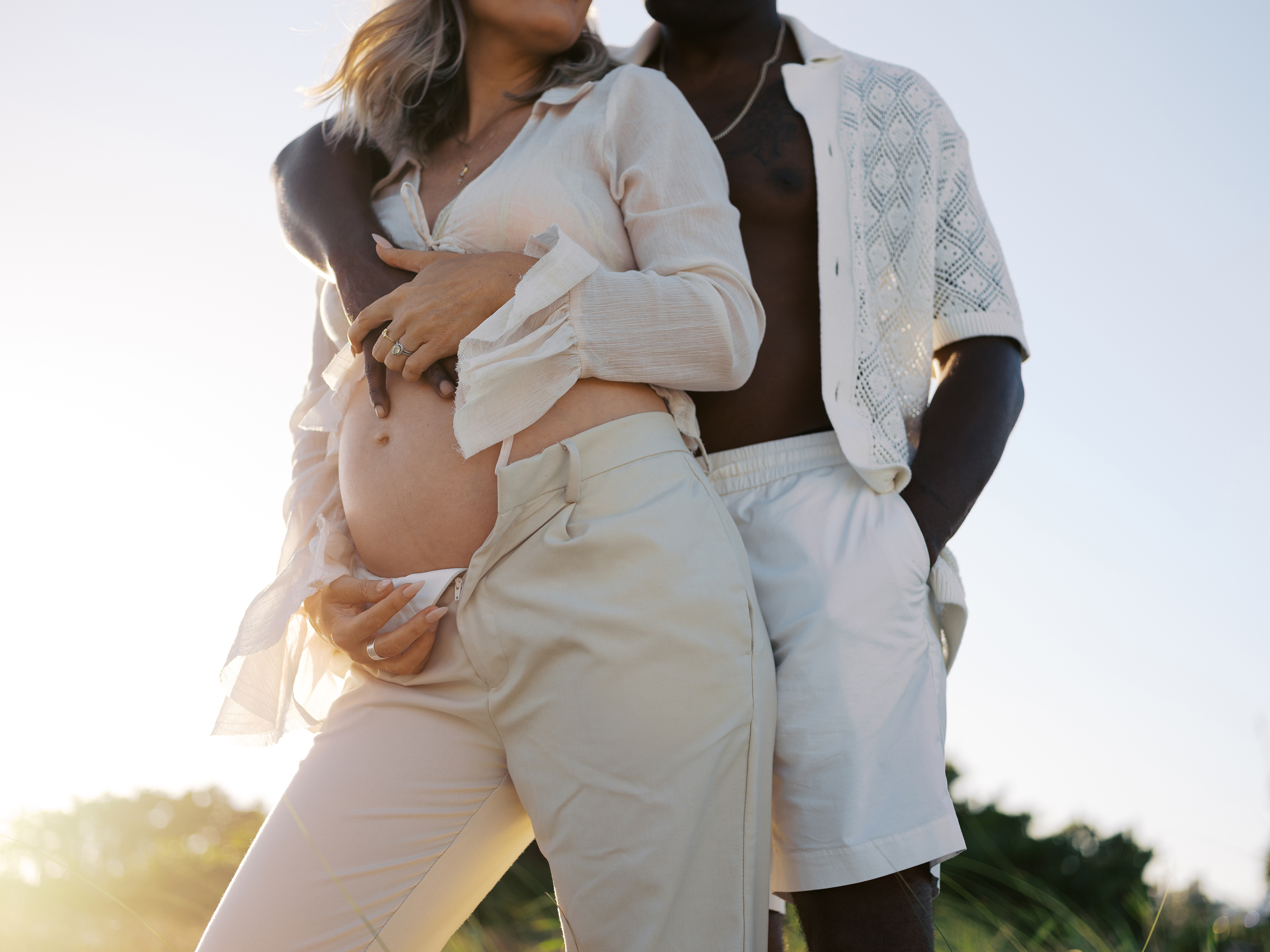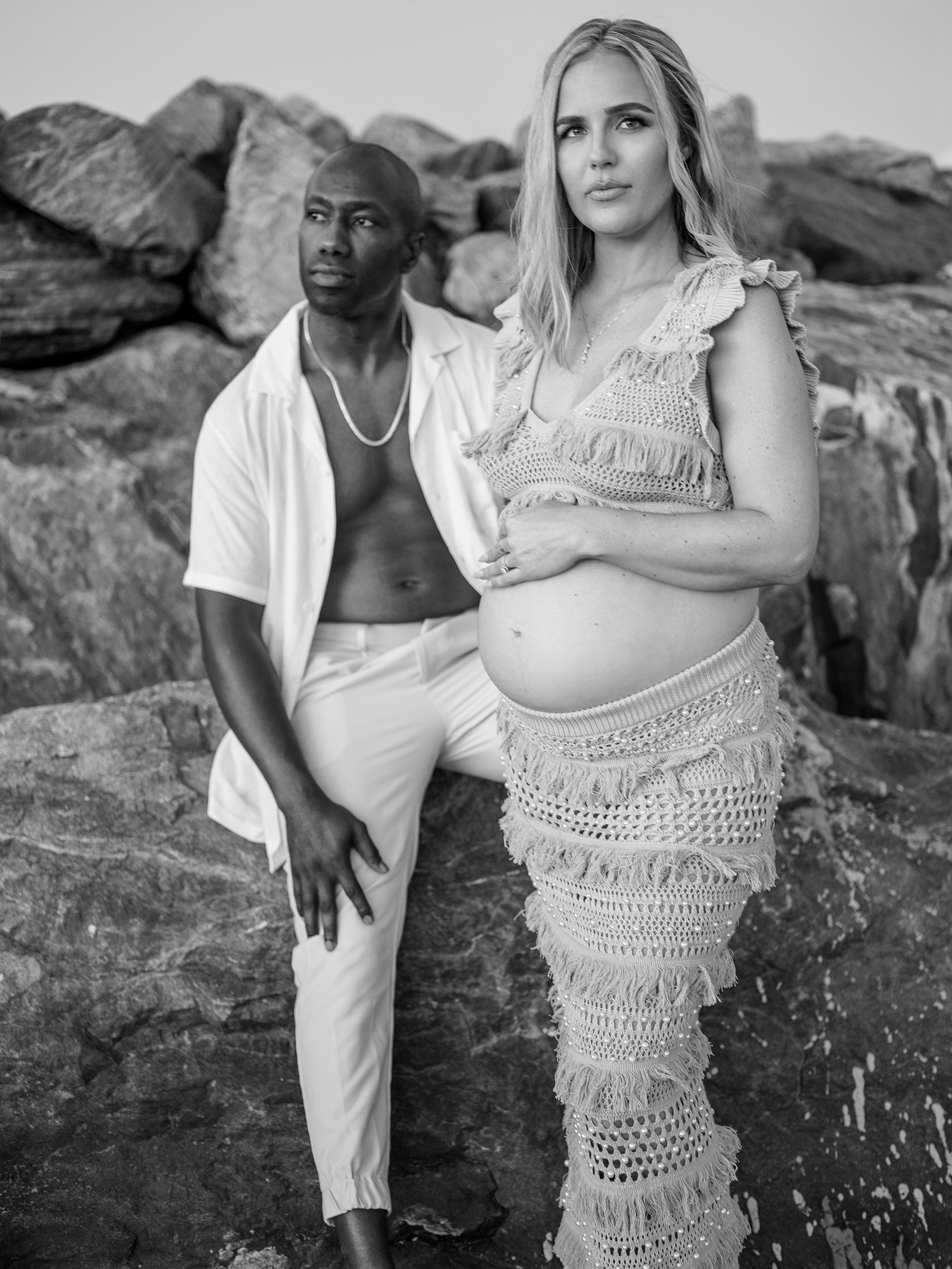 The day truly came together for Morgan and Gene’s maternity session. Unexpected details like the cruise ship passing by, a plane shining in the sun overhead, and the raw beauty of untamed water and sand, almost seemed fated to create a simple yet striking session. It was a perfect match for their modern style session, serving as a beautiful reminder of the joy of expecting their little one.