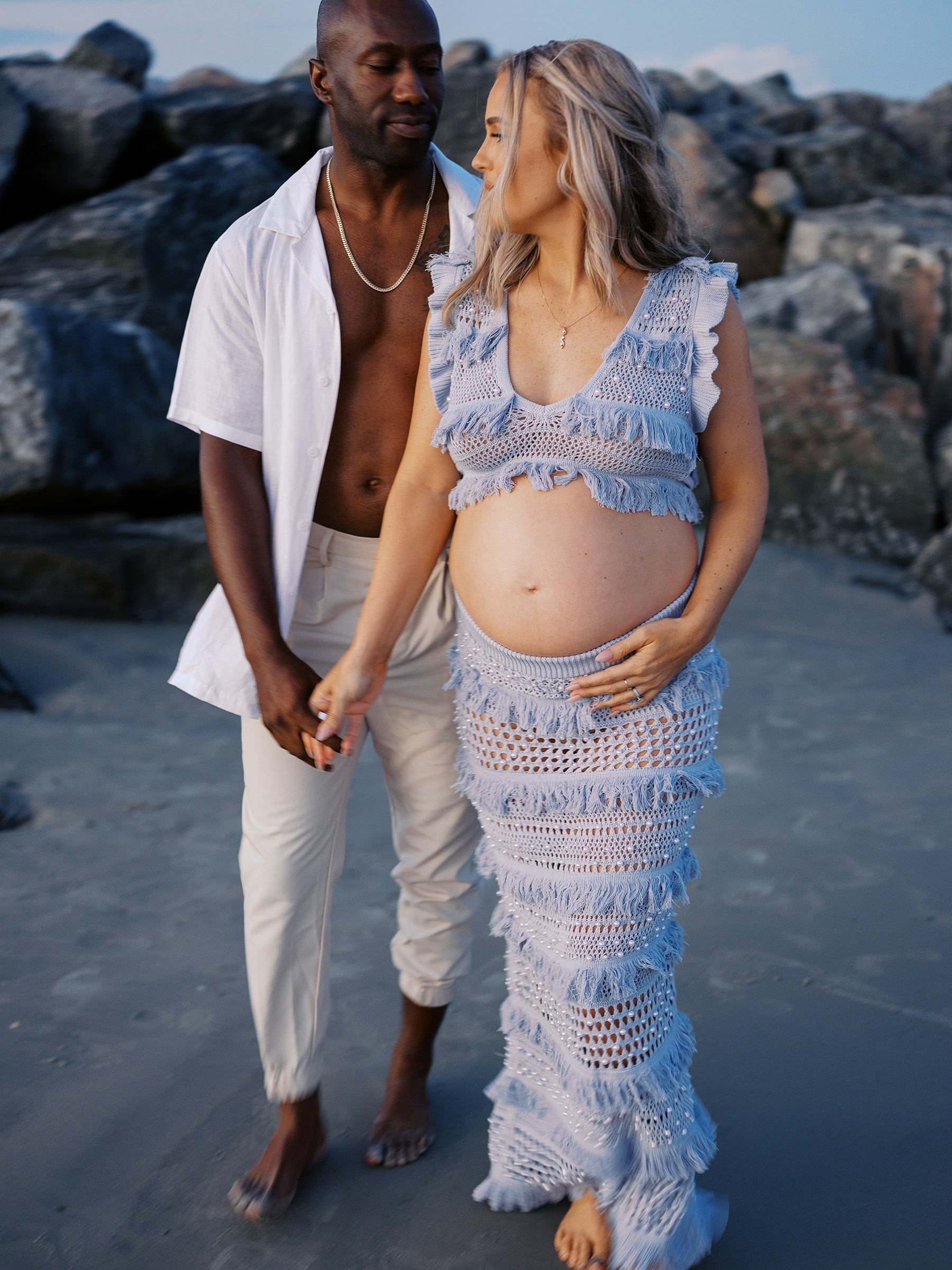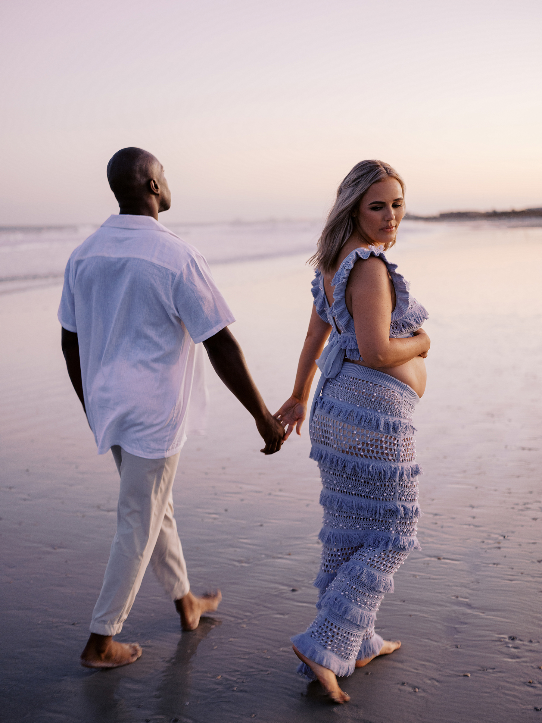 The ocean was definitely an inspiration for this couple, reflected in their sun-kissed look and romantic ambiance. Both dressed casually in beach wear, but Morgan stole the show in her almost mermaid-like maternity dress, a lacy teal net, dotted with sequins. Bare foot photos in the incredible lighting, details of seagrass and rocky outcrop was a perfect way to highlight their love. You can see devotion in every photo, their partnership in bringing a new life into this world. They stand together in enjoyment of these simple moments they share before facing the responsibility of the new chapter of their lives that’s about to unfold.