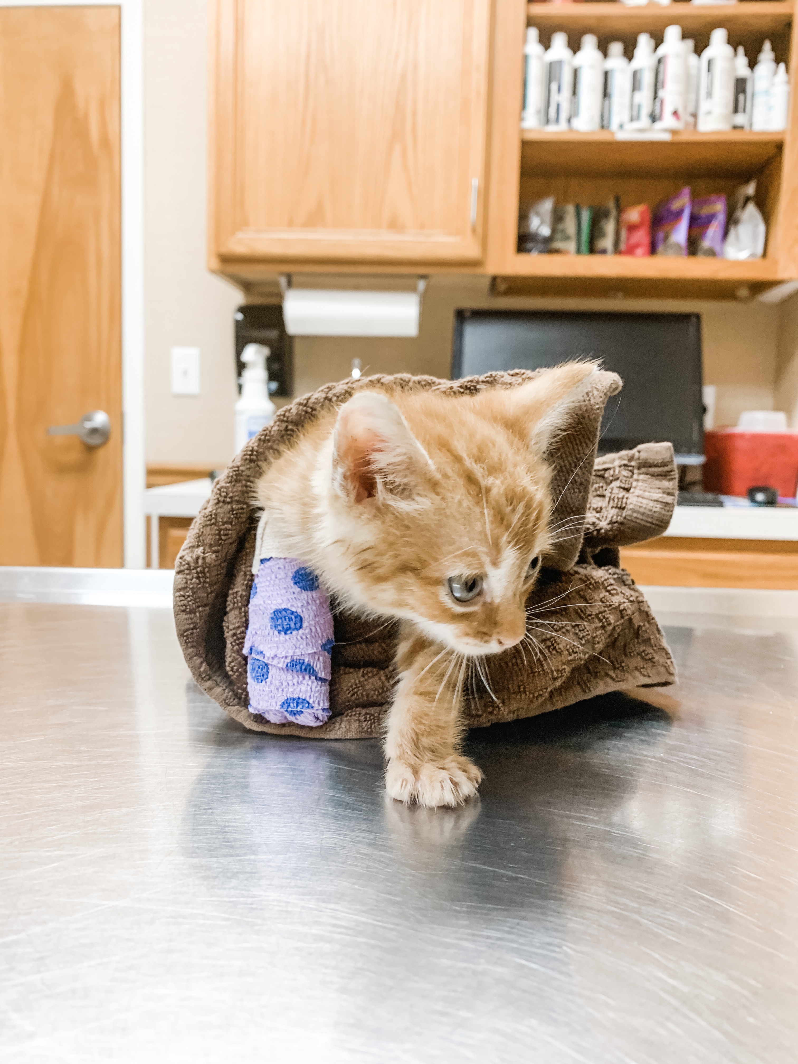 A tiny orange kitten with a huge heart, our newest foster kitten!