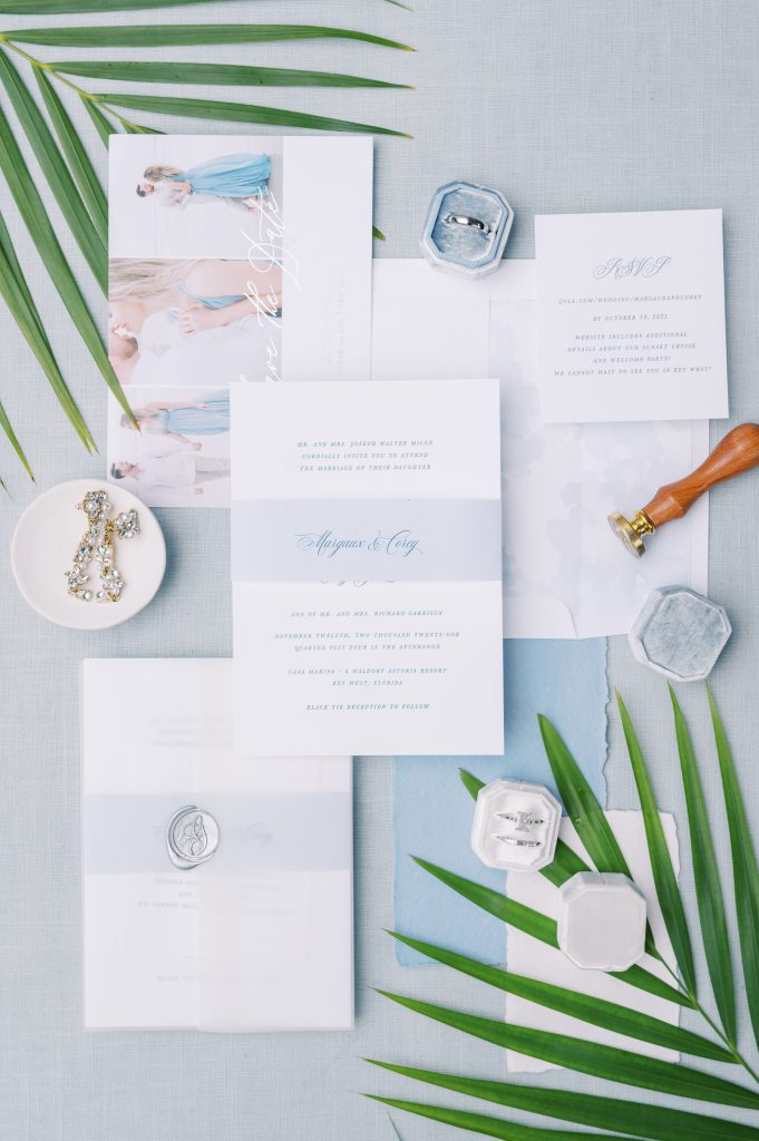 I can’t believe I originally met Margaux nearly 10 years ago when her mom hired me to photograph her senior portraits! After college, Margaux made the move to Jacksonville, where she met Corey through her cousin. The beach has been a special place for them since the beginning of their relationship. They often spent date nights walking in the surf and looking for sharks teeth. When Corey proposed to Margaux – he proposed on the beach. And of course, we went to Jetty Park for their engagement session! So when they selected a wedding venue – it had to have 2 things: A beach, and the color blue (Corey’s favorite)! But choosing a venue wouldn’t be difficult at all – Margaux had known she wanted to get married at Casa Marina in Key West nearly her entire life. Her family’s roots run deep at this historic hotel and it would be the perfect place for Corey and Margaux to lay the foundation for their own marriage.