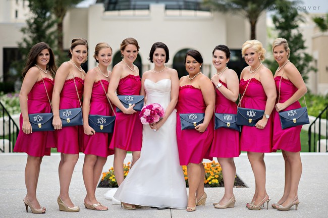 I am absolutely loving this preppy navy and pink monogrammed wedding from a couple of puppy-doting lawyers! Bethany and Brian, both UF Law School grads, met during their first few weeks at UF. Although no one really knows Brian’s version of the story, Bethany decided Brian was a know-it-all and wasn’t overly fond of him (knowing Bethany, I’m not uber surprised by this). They decided that this contempt was a little more like love, and without any formalities, just decided to be together. Just like that. Like lawyers do.