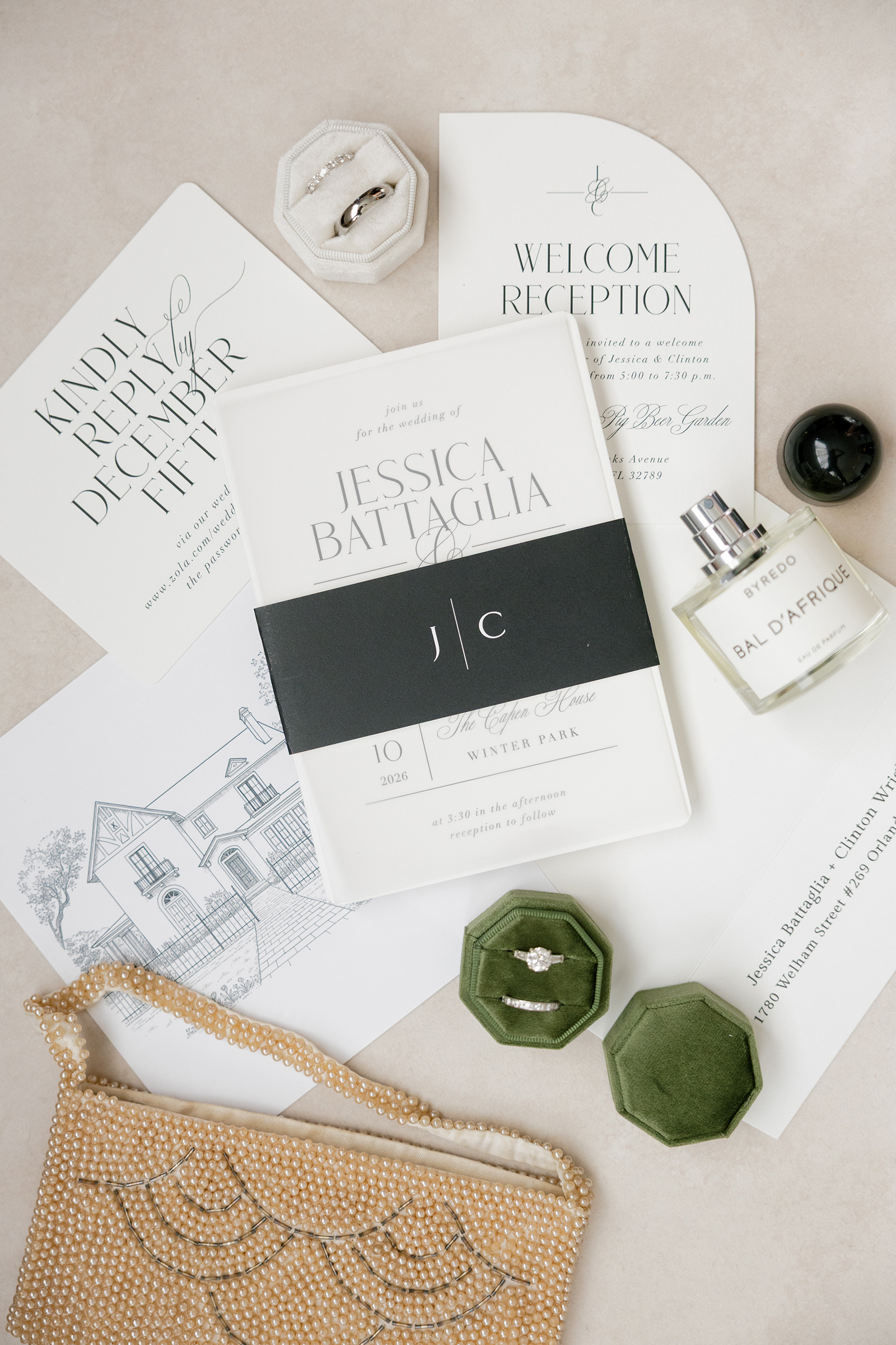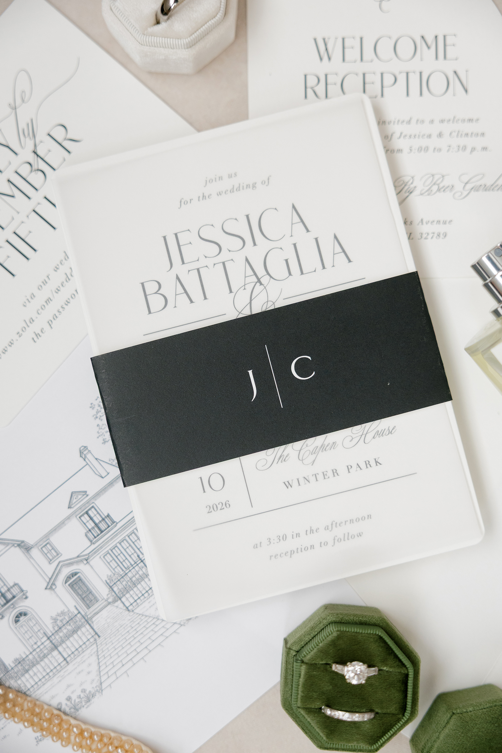 Elegant wedding invitation suite with modern accents for Florida wedding