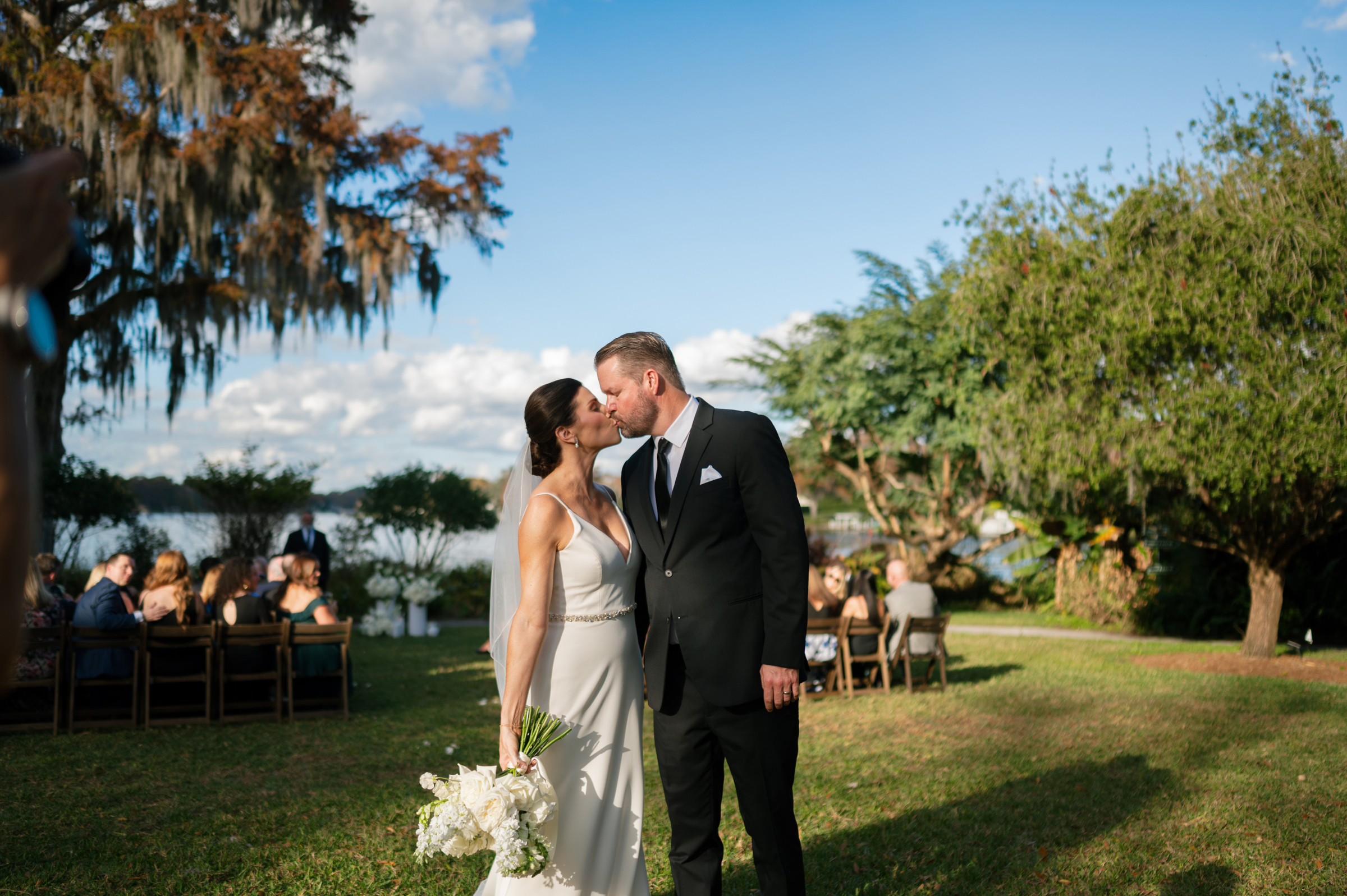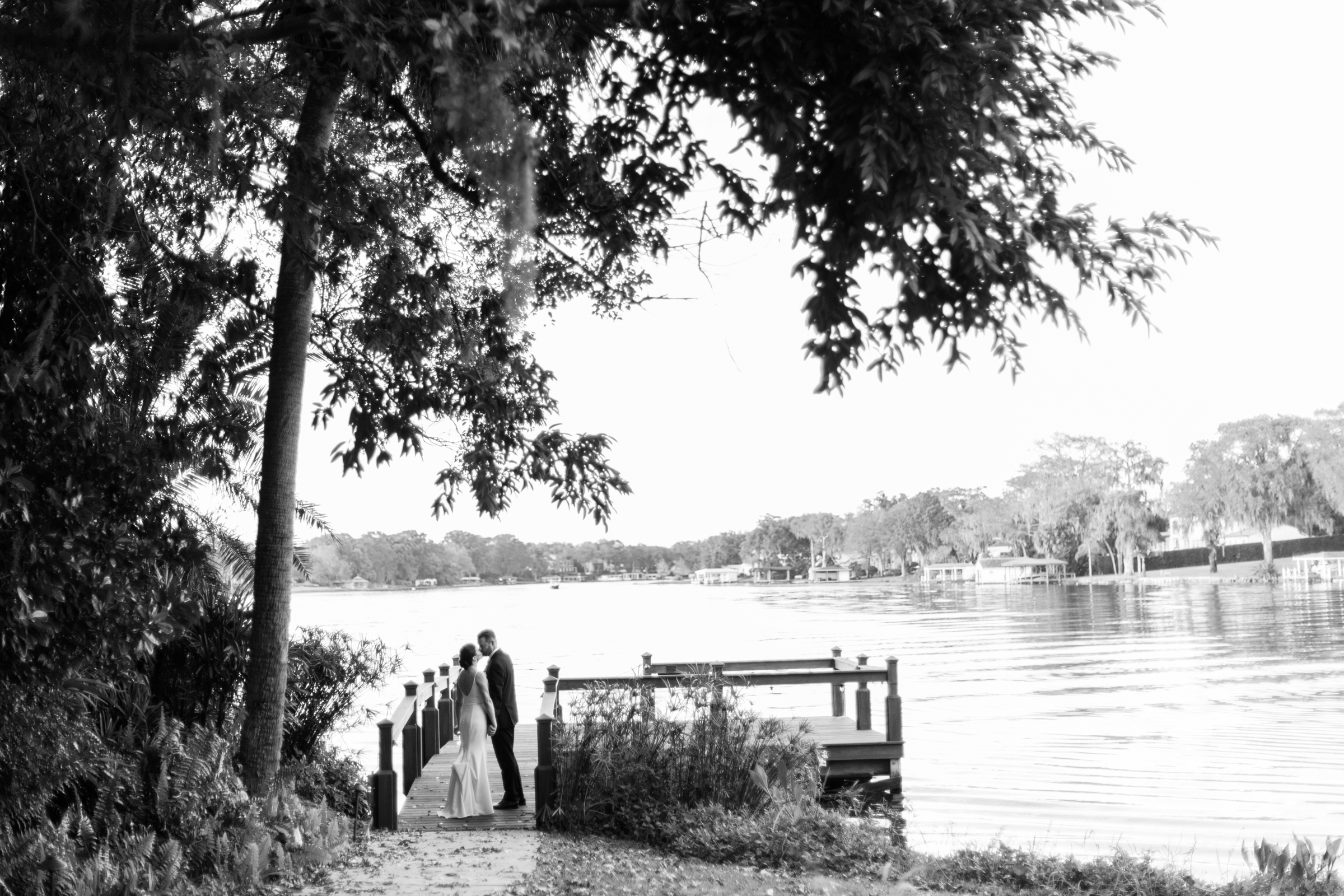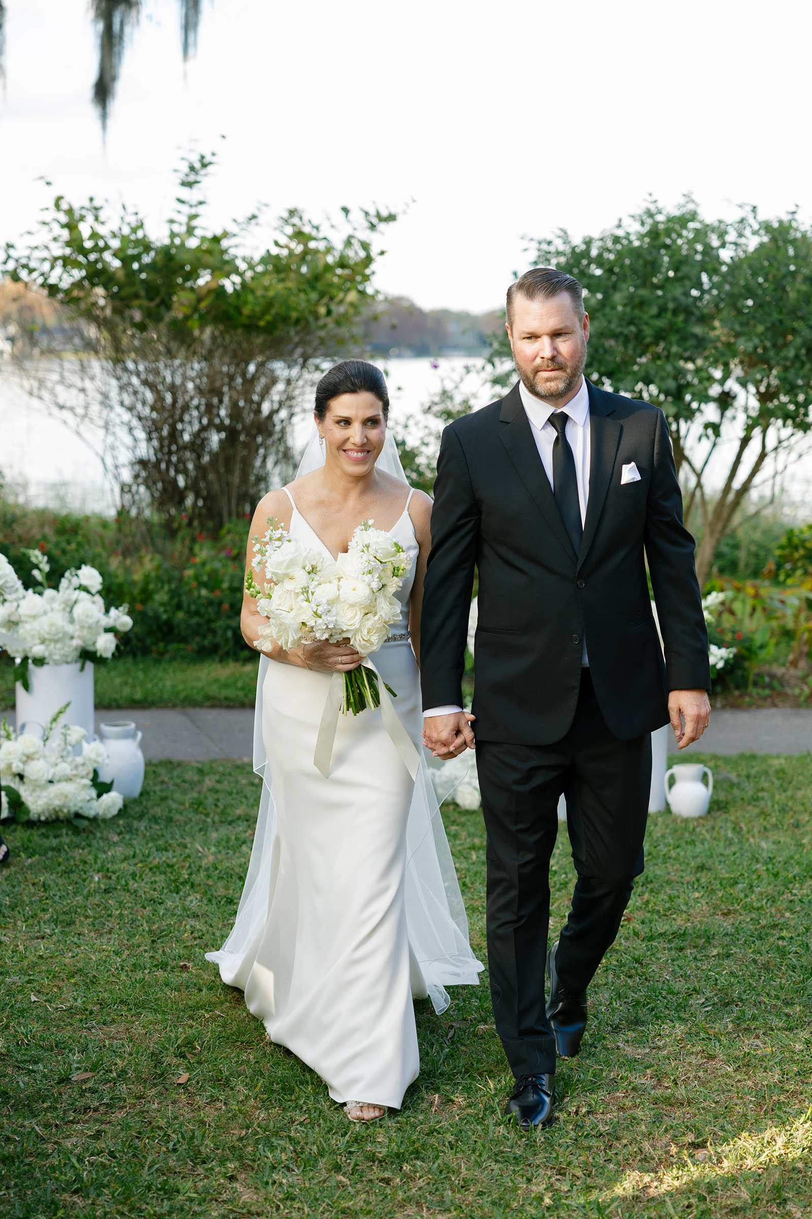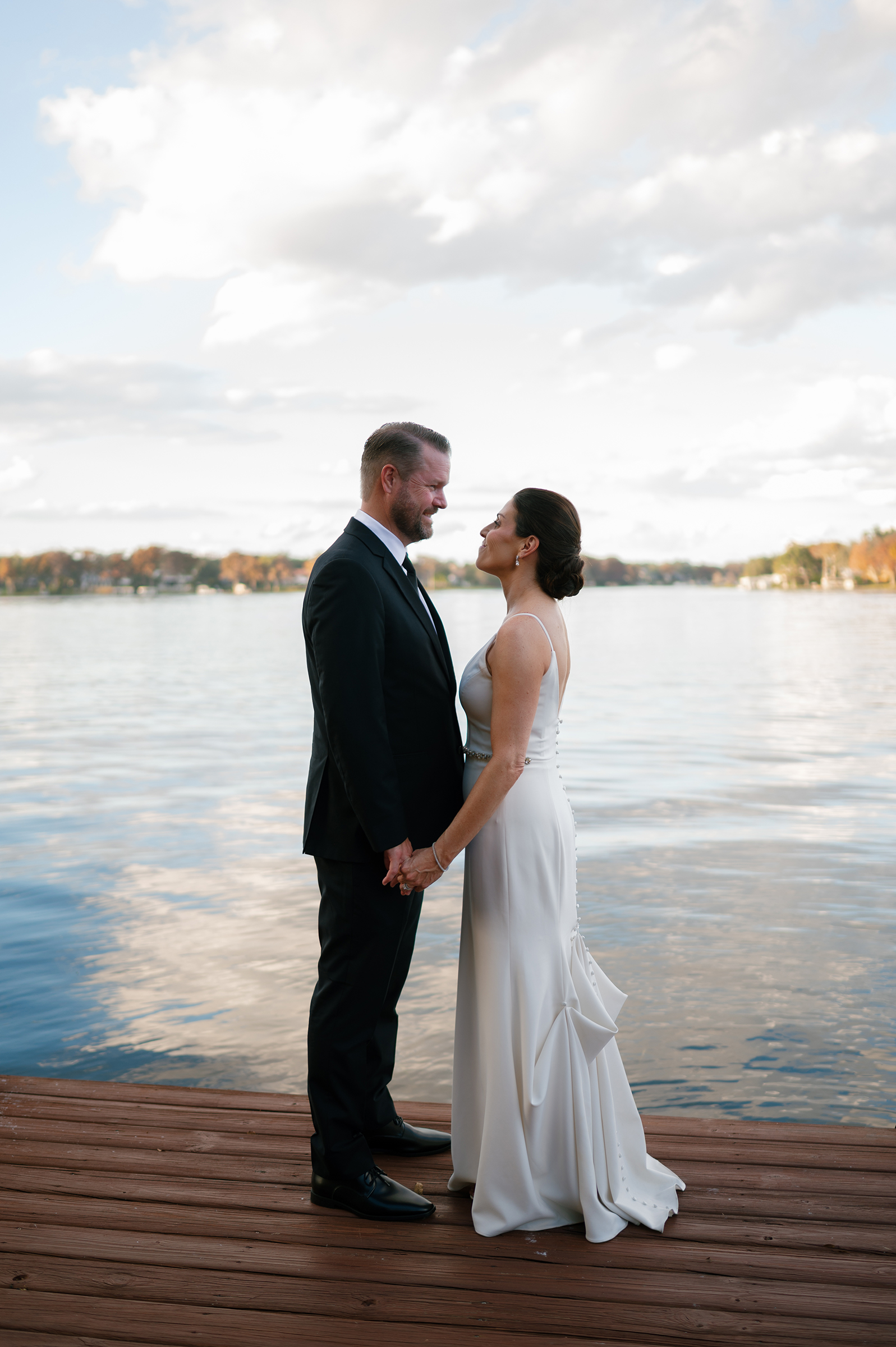 One of the most memorable moments was the sweet appearance of the couple’s golden retriever, bringing the perfect amount of personality and warmth to the already special day. Dressed to the nines in a tuxedo bandana, he brought some extra layer of charm that left everyone smiling. Making sure to reflect who they were, the couple thoughtfully crafted every detail. From their personalized signature drinks to the seafood bar that paired beautifully with the lakefront views, everything came together in a way that felt natural and true to the Jessica and Clint.