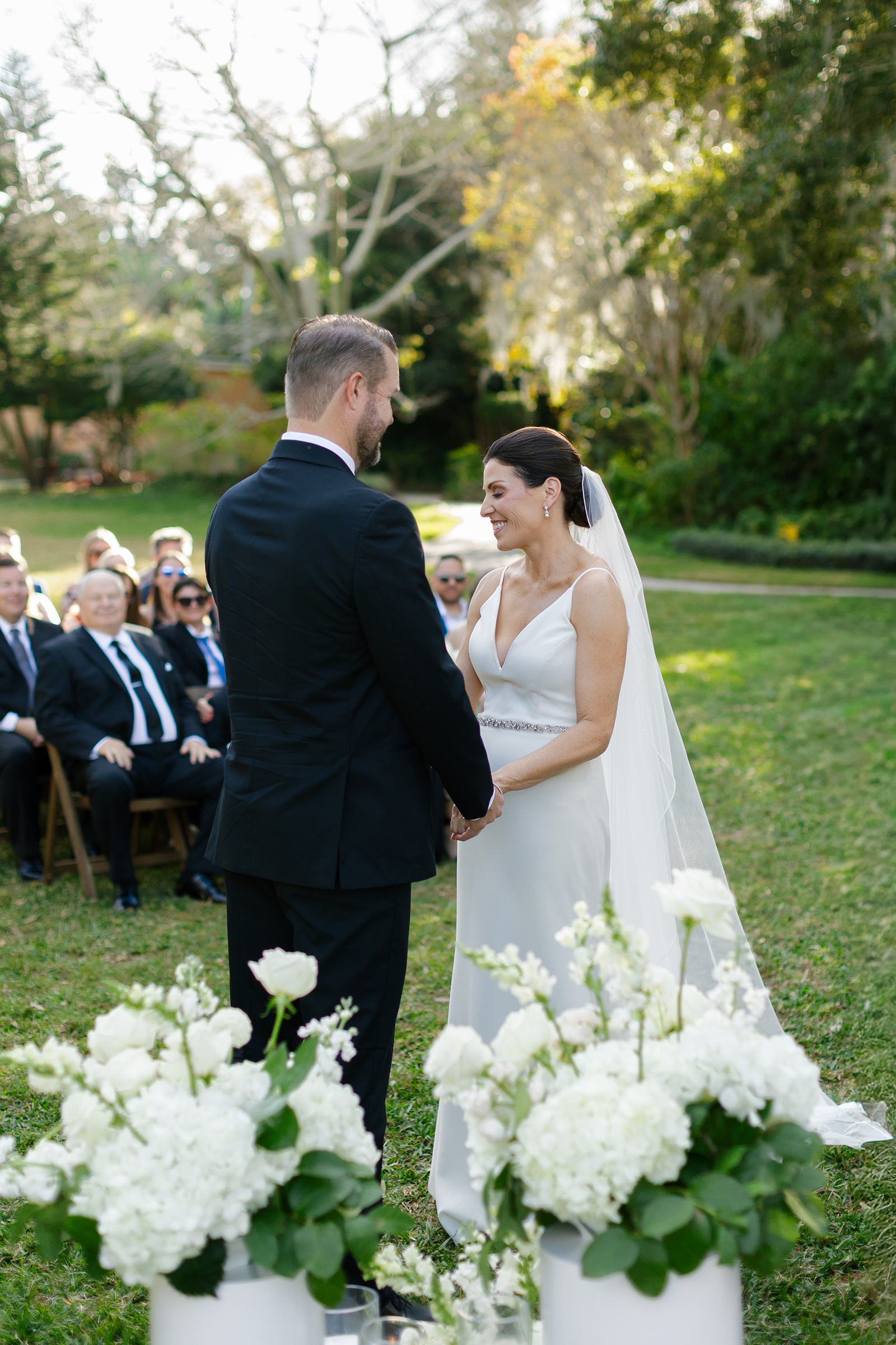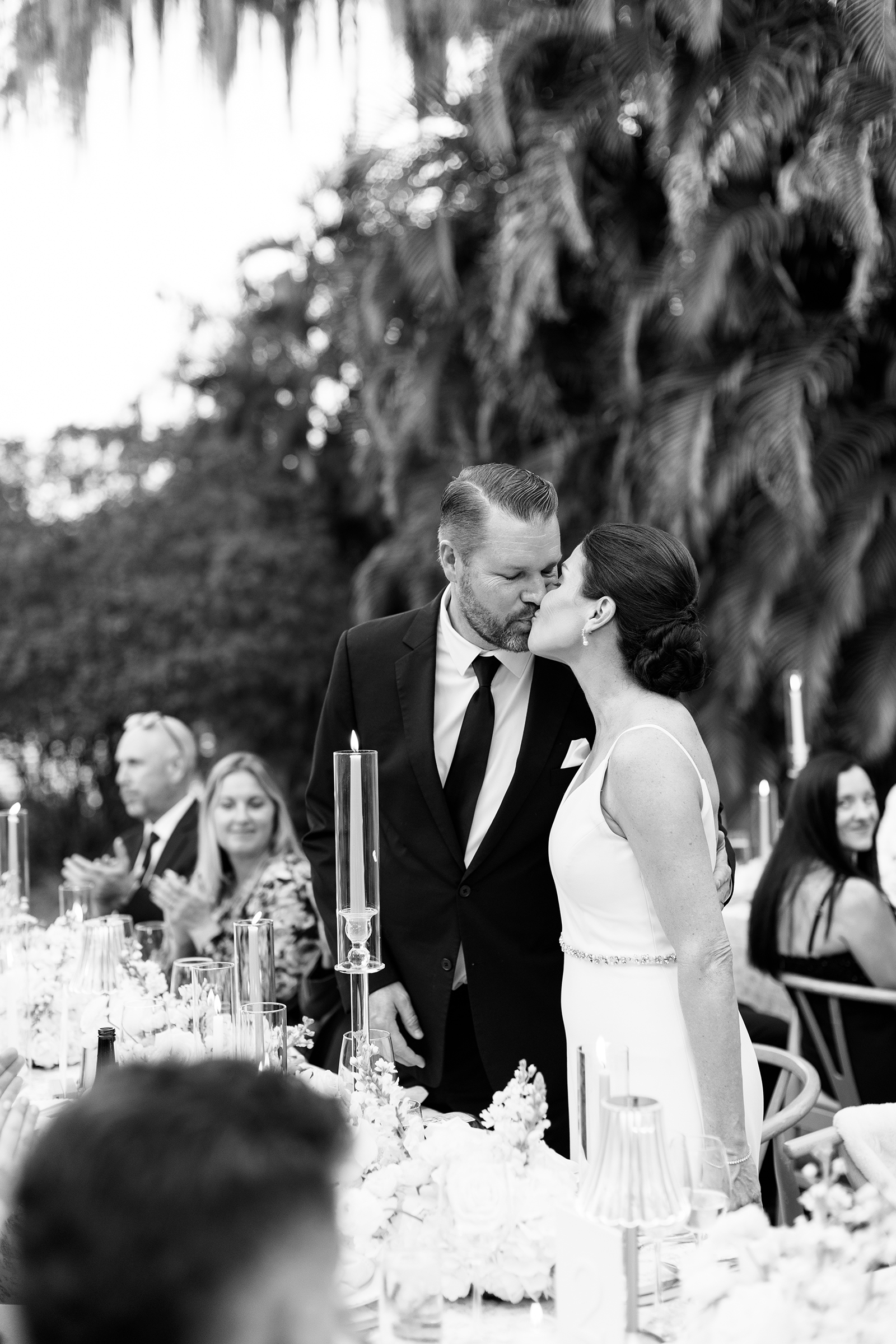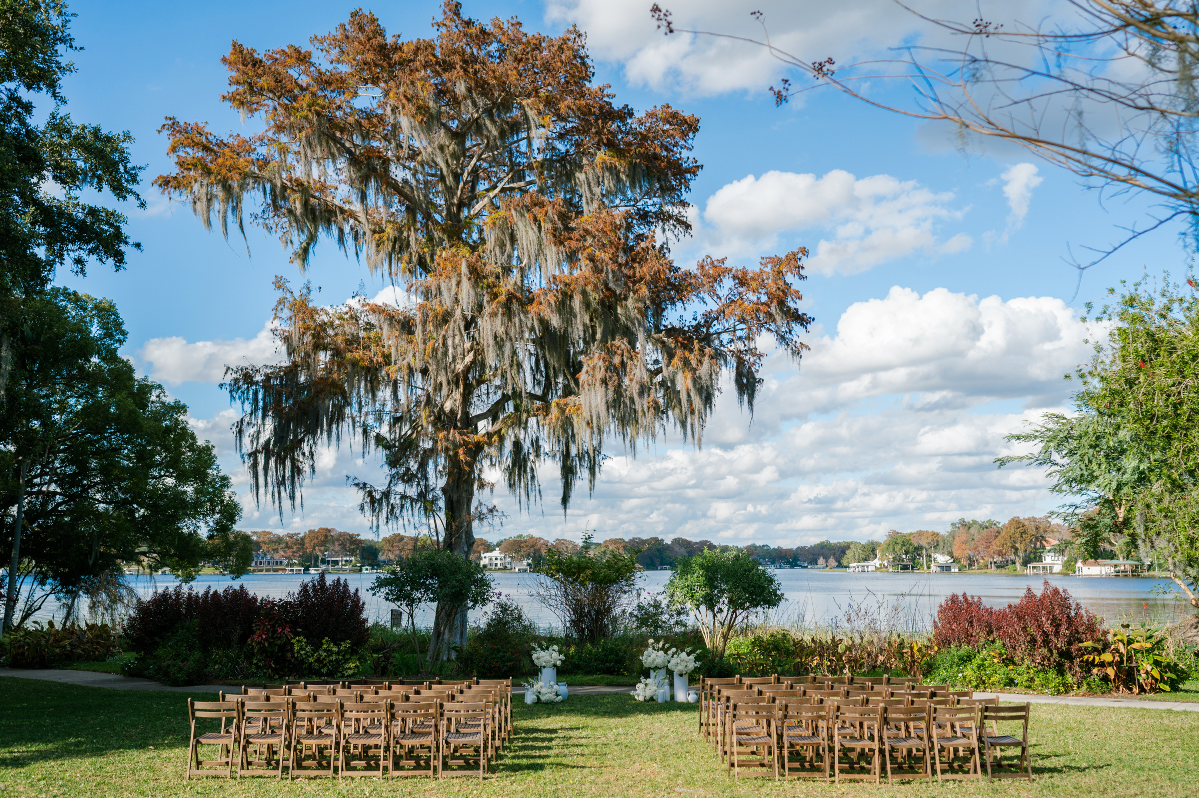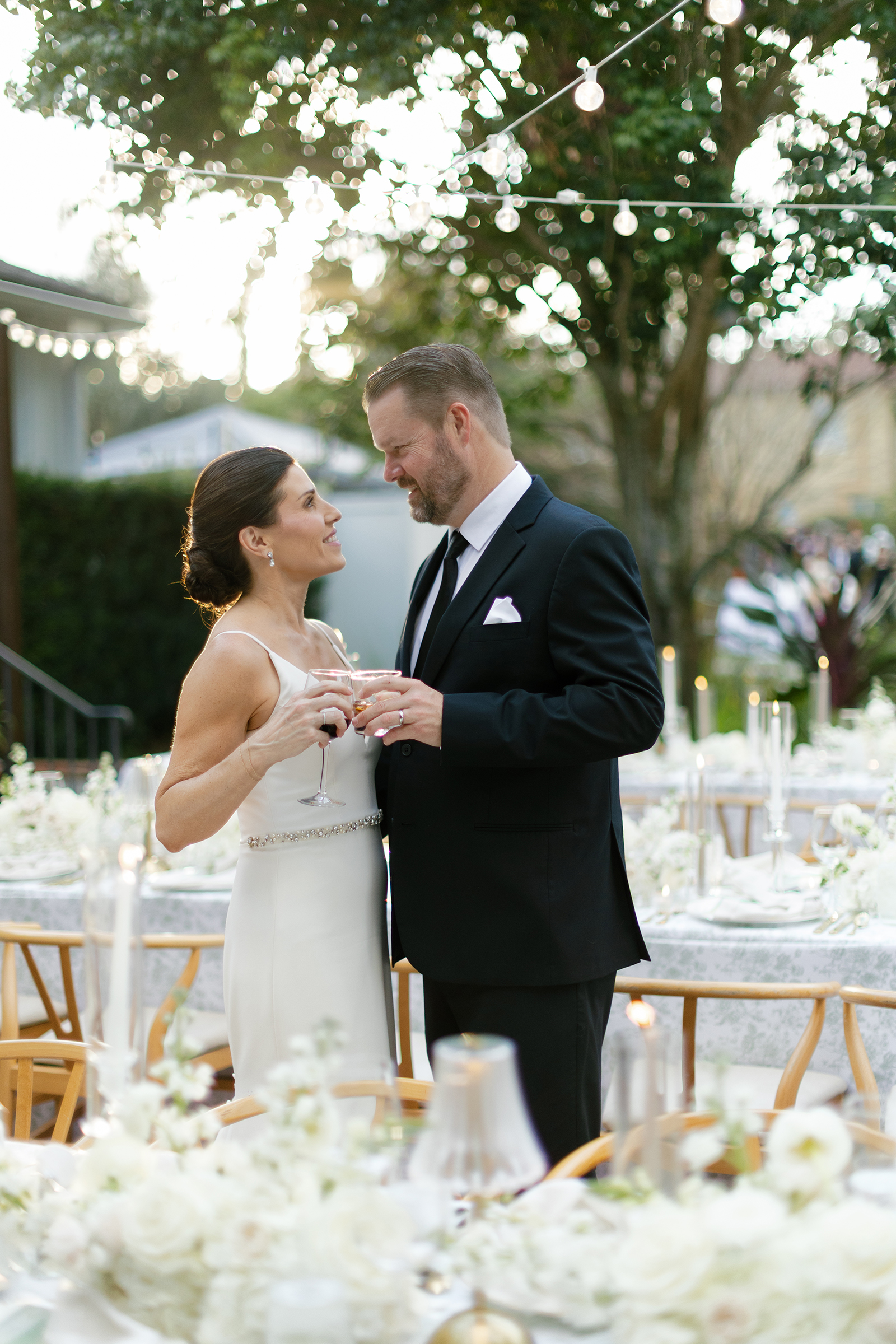 One of the most memorable moments was the sweet appearance of the couple’s golden retriever, bringing the perfect amount of personality and warmth to the already special day. Dressed to the nines in a tuxedo bandana, he brought some extra layer of charm that left everyone smiling. Making sure to reflect who they were, the couple thoughtfully crafted every detail. From their personalized signature drinks to the seafood bar that paired beautifully with the lakefront views, everything came together in a way that felt natural and true to the Jessica and Clint.