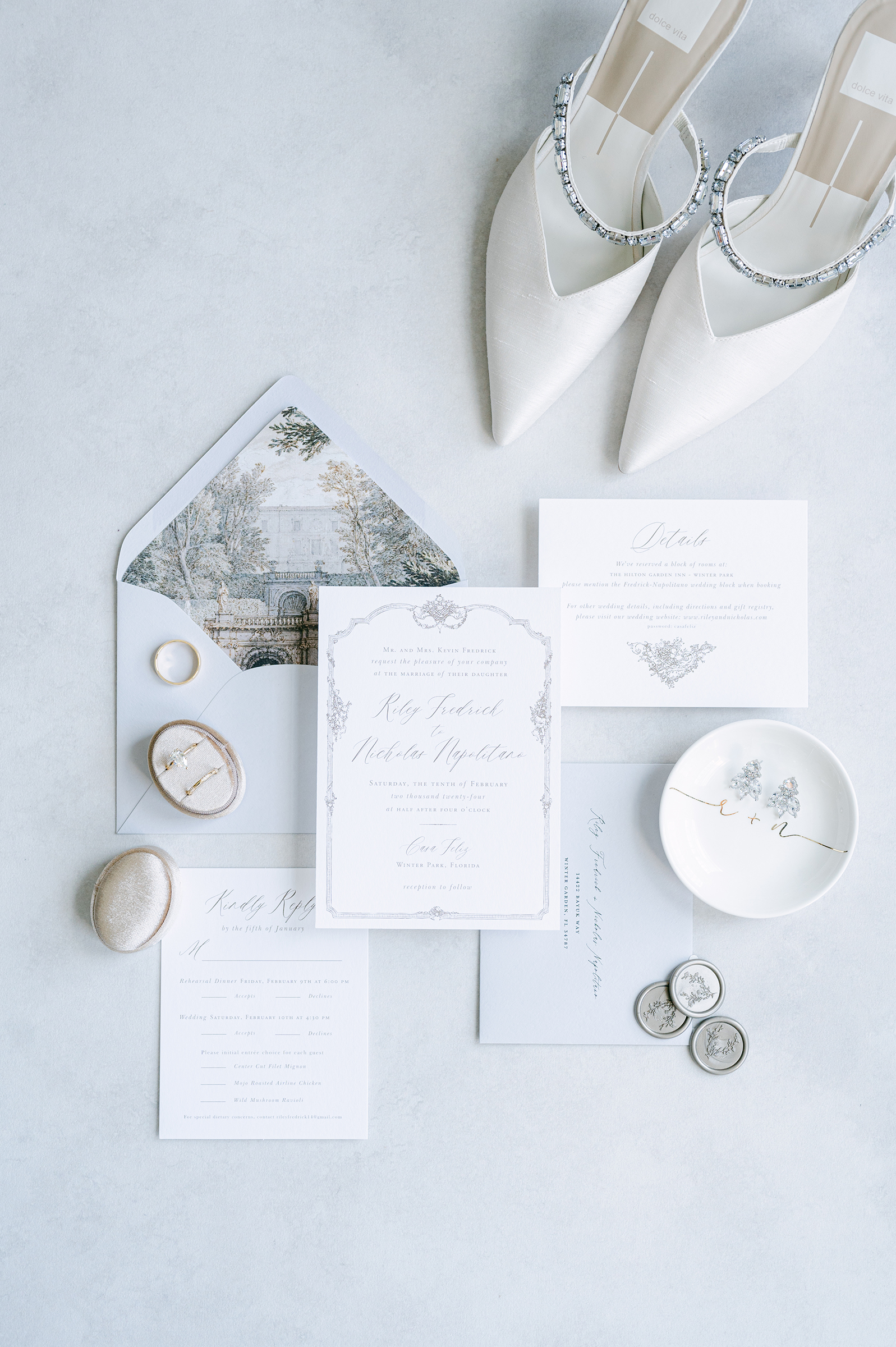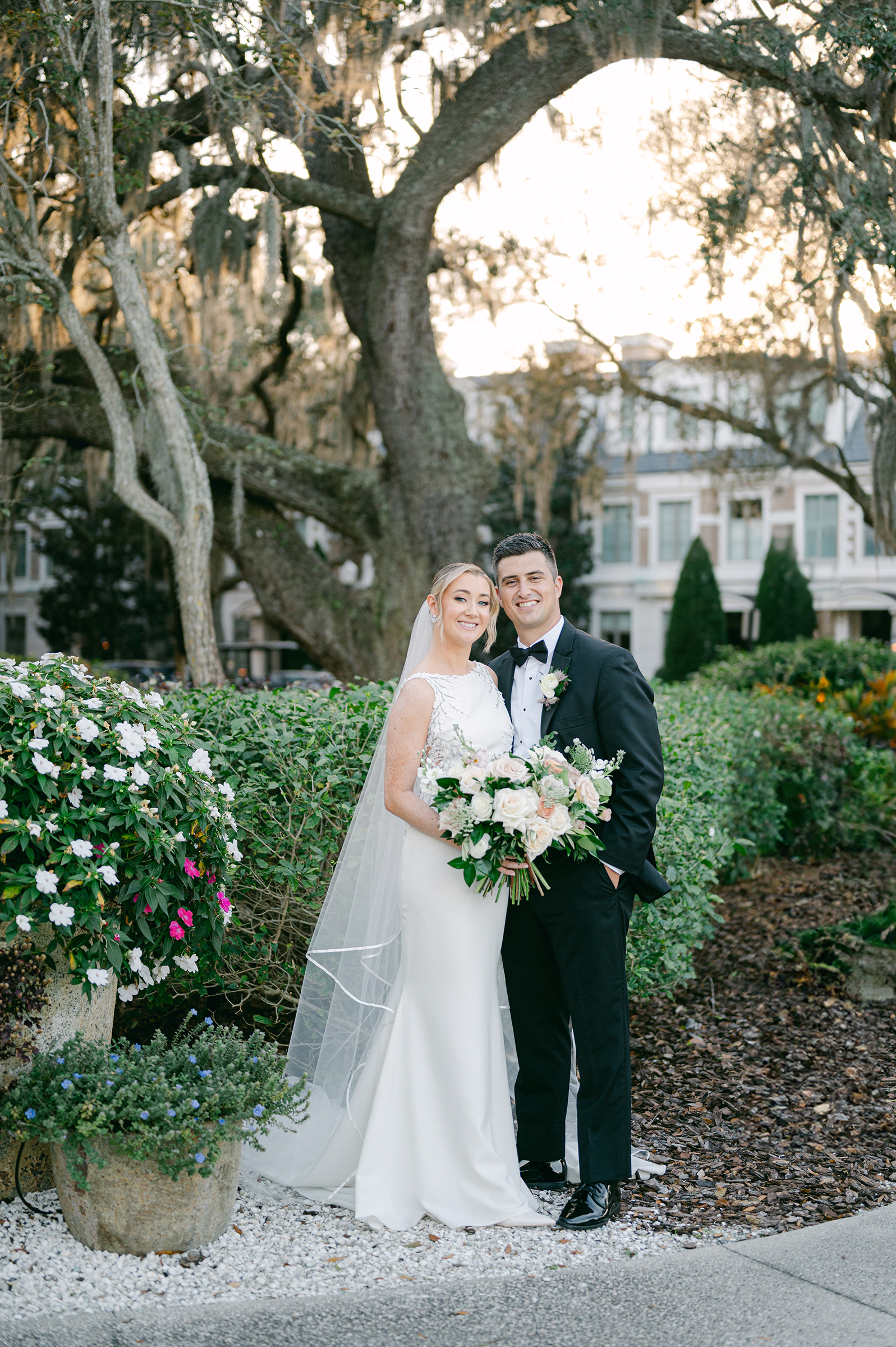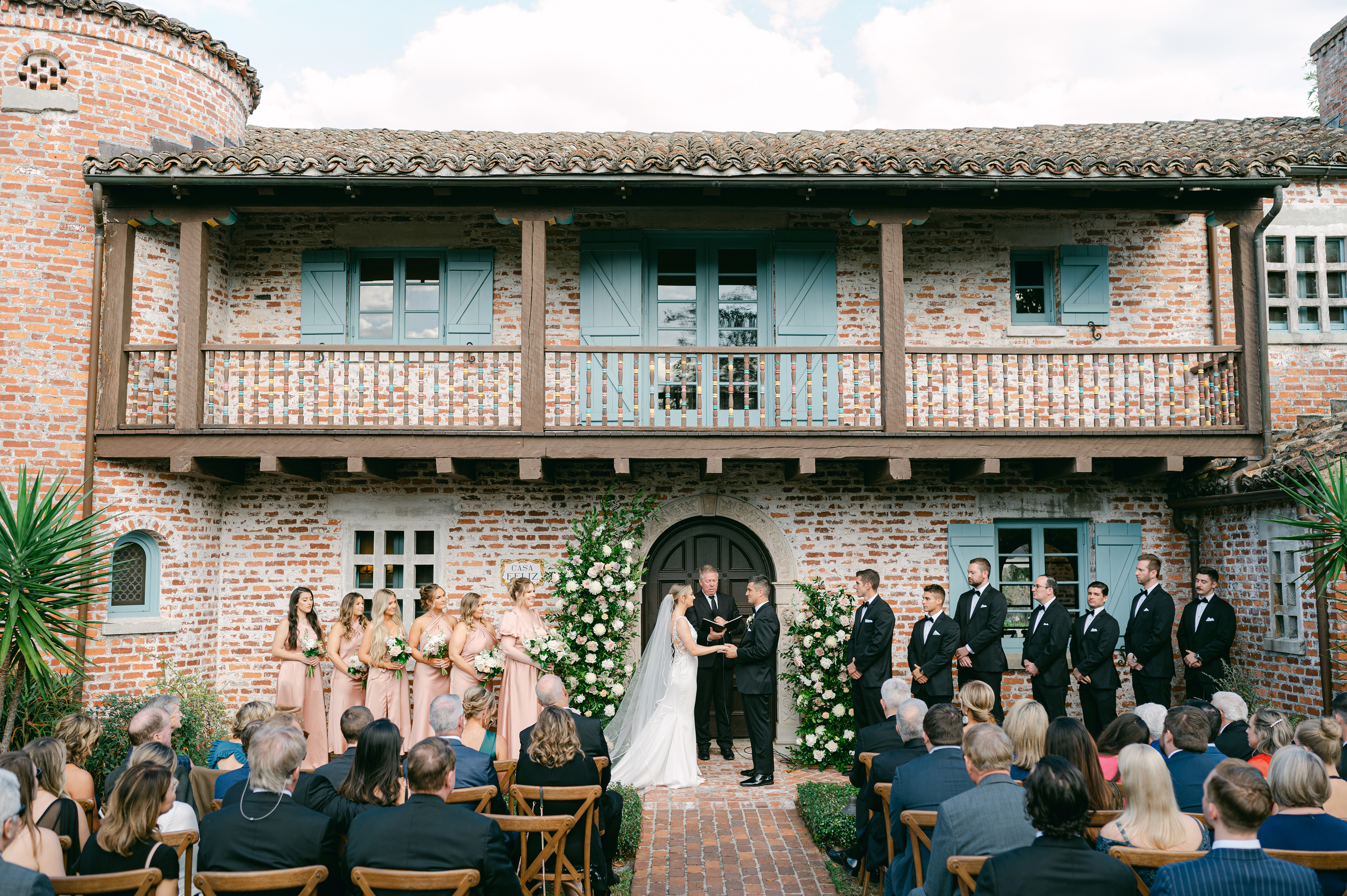 Riley and Nick brought so much romance to their wedding at historic Winter Park venue, Casa Feliz. Soft floral colors and greenery made the perfect backdrop for their ceremony space at the front of the house before guests were treated to an al fresco dinner on the back patio.