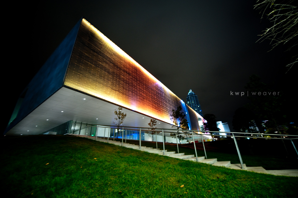 The Tampa Museum looks amazing at night, with an outdoor light show on the building.