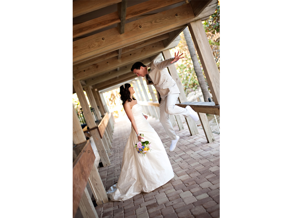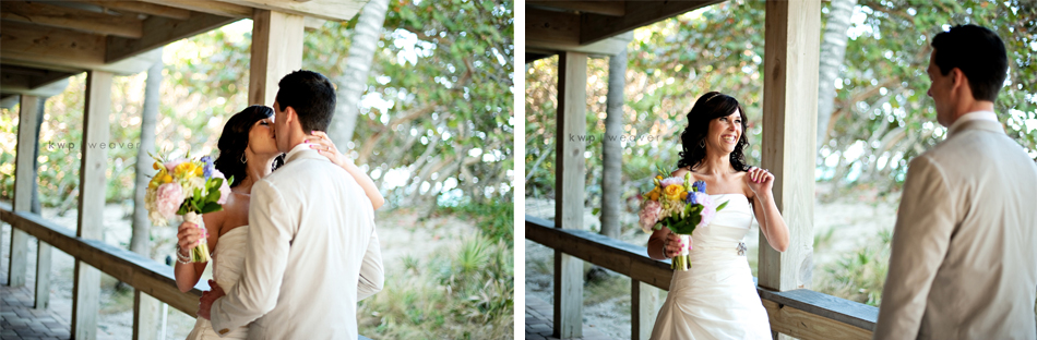 After Casey realized he’d probably be stuck with Colleen forever (:)), he proposed on a snowy morning at their home in Maryland. Their destination wedding at the Jupiter Beach Resort was nothing short of amazing. Their details were soft and sweet, and they brought in fashionable details from JCrew and Anthropologie to suit their nerdy-chic style! The flowers had romantic touches of peonies, baby’s breath and billy buttons. Their music really told the story of the day (and we rocked out to LOTS of Glee music!), so keep an eye out during the post for songs they used.