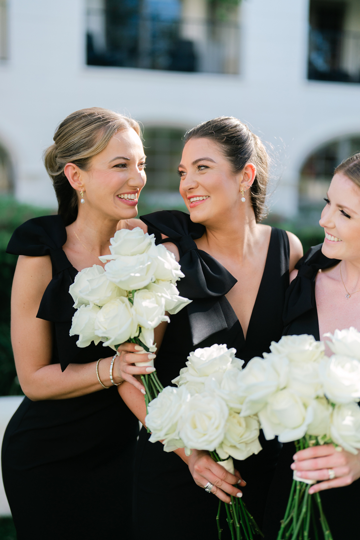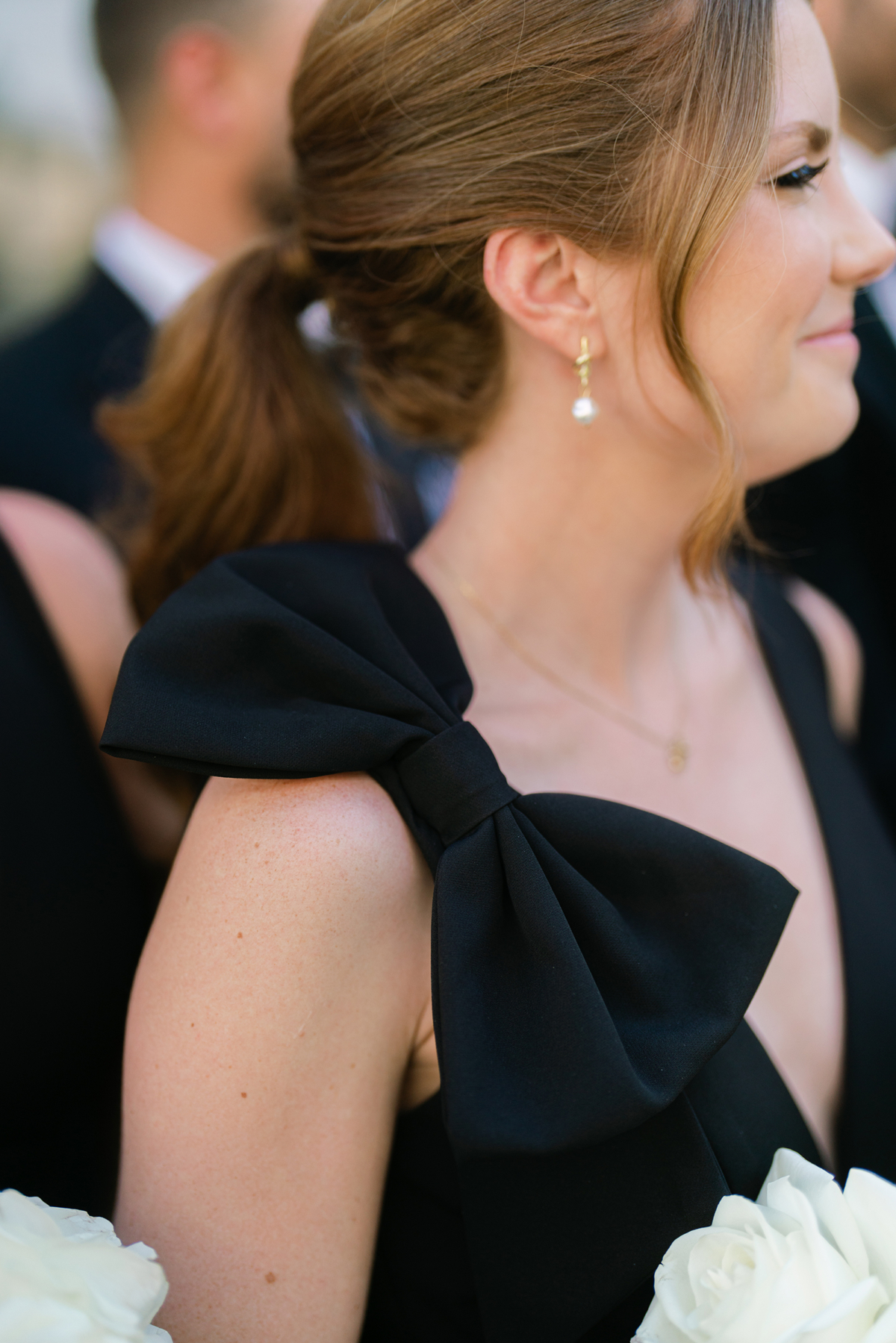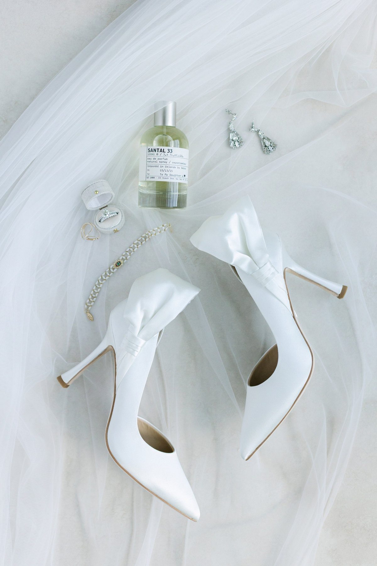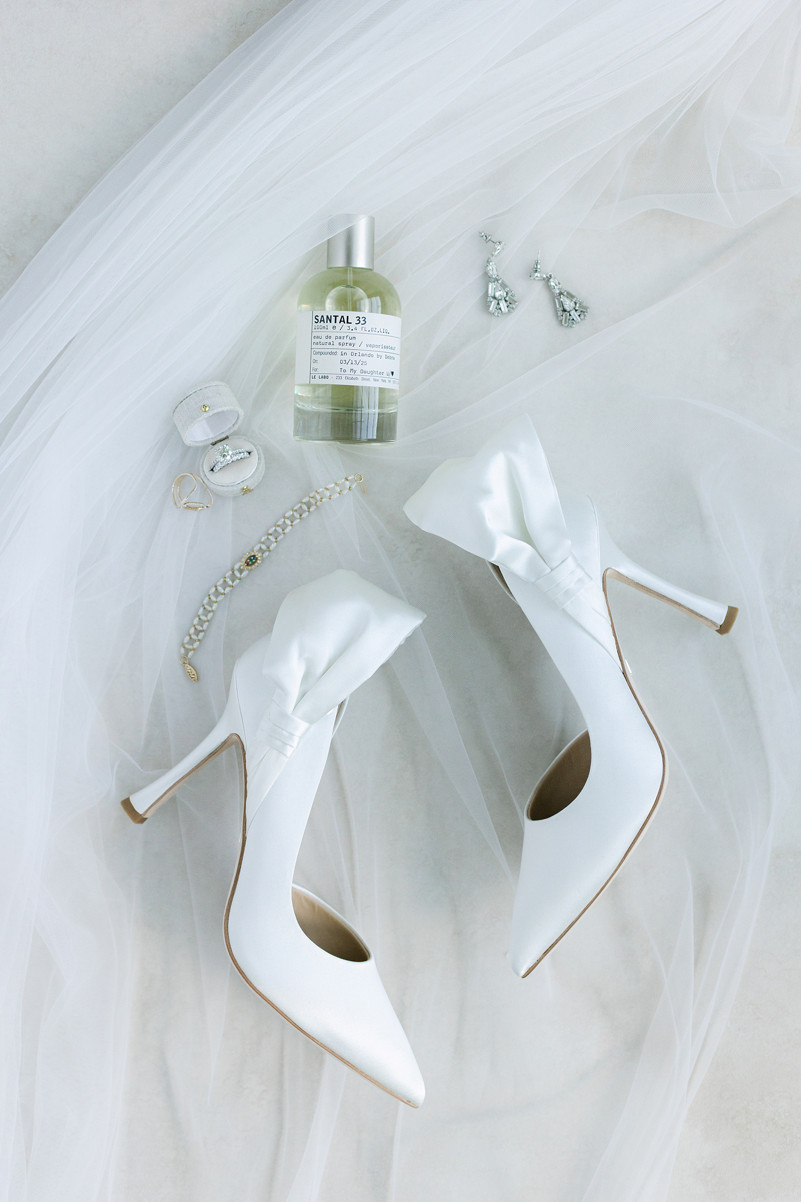 Cassidy was the embodiment of pure class. From the black and white color scheme that was sprinkled throughout the day to the elegance of her lace-detailed bridal outfit before the actual celebration, she had us falling in love with her. Although her wedding shoes were hidden underneath her silk wedding gown, they added a necessary flair that perfectly encapsulated her personality – elegant beautifully combined with some pizzazz! Of course we must also discuss her wedding dress. A balanced combination of minimalist meets royalty, Cassidy’s dress delivered a sense of editorial chicness similar to one we would only dream of owning. In hopes to tie all the bridal details in a seamless way, Patricia Lejeune, from Lejeune Artistry, further enhanced her natural beauty with a nude colors and a perfect mix of shimmers to catch one’s eye.