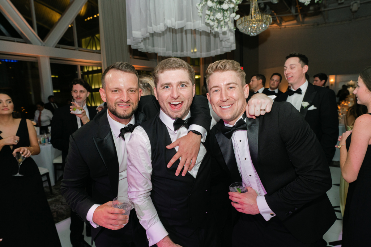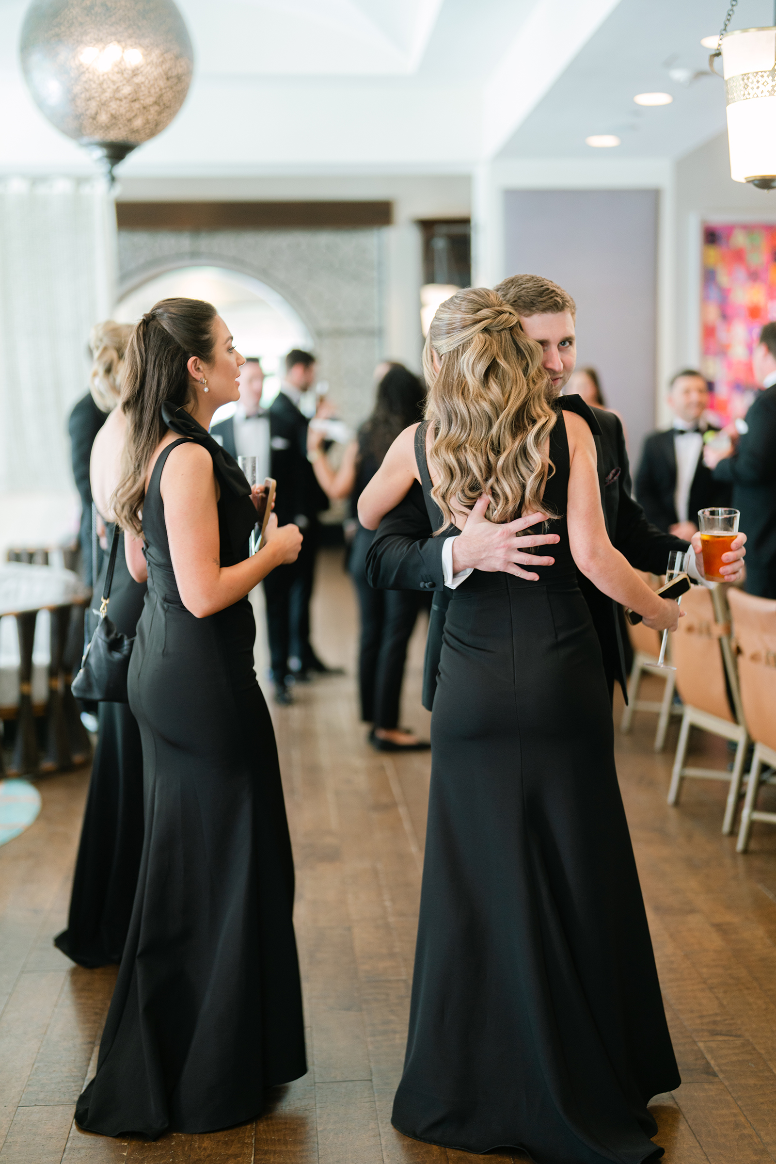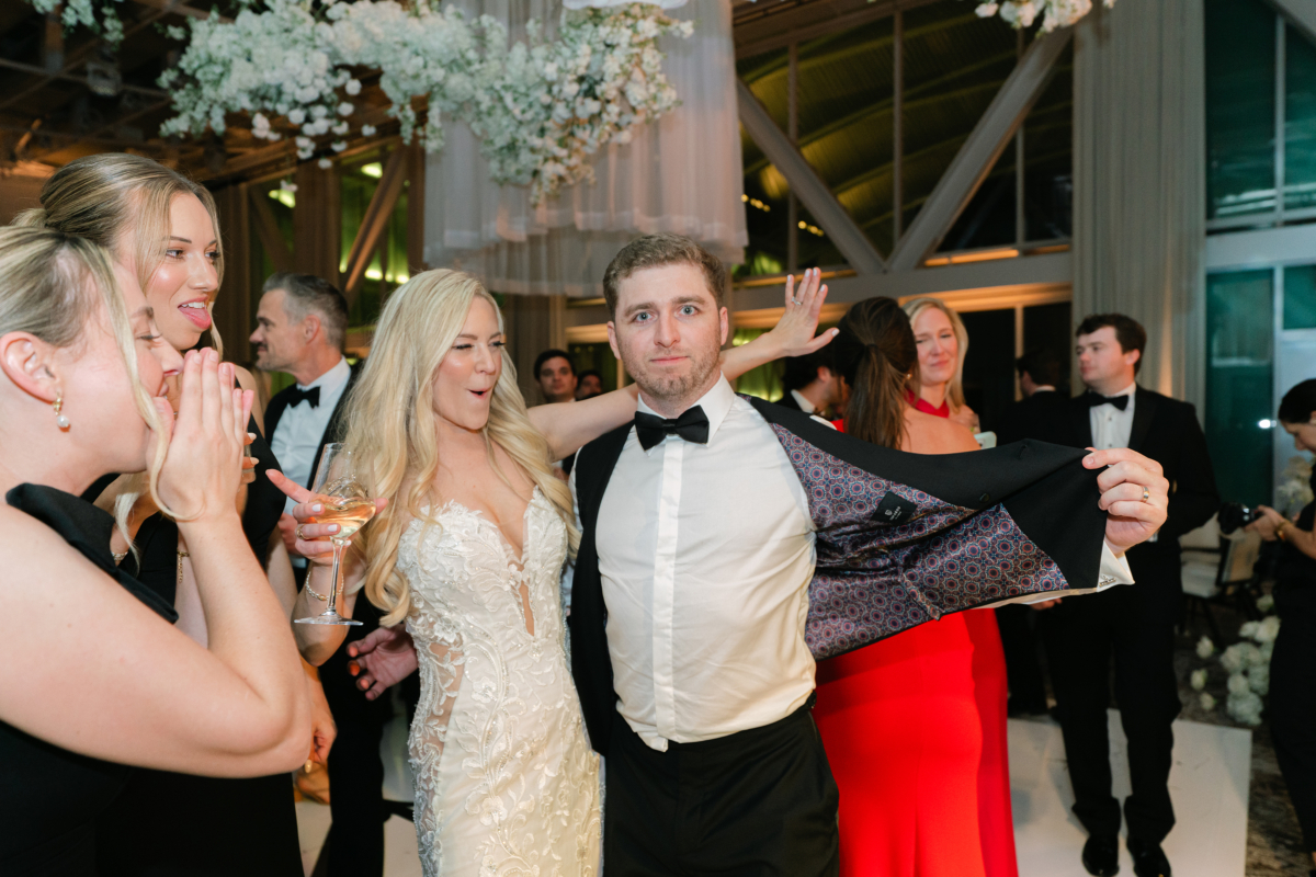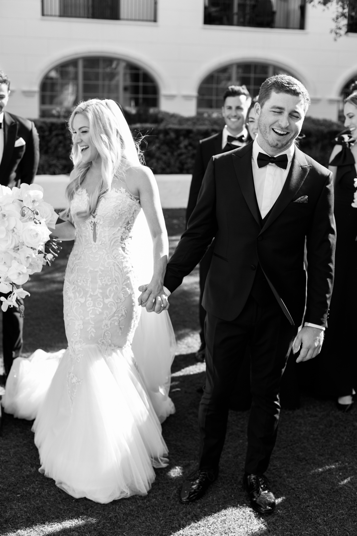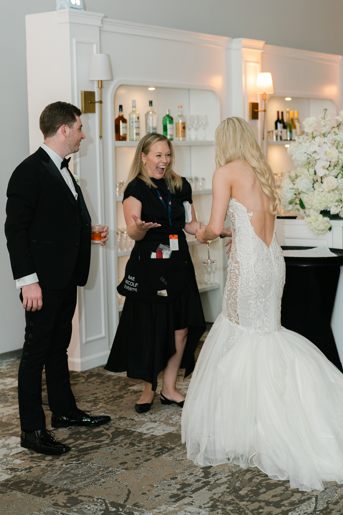 Cassidy was the embodiment of pure class. From the black and white color scheme that was sprinkled throughout the day to the elegance of her lace-detailed bridal outfit before the actual celebration, she had us falling in love with her. Although her wedding shoes were hidden underneath her silk wedding gown, they added a necessary flair that perfectly encapsulated her personality – elegant beautifully combined with some pizzazz! Of course we must also discuss her wedding dress. A balanced combination of minimalist meets royalty, Cassidy’s dress delivered a sense of editorial chicness similar to one we would only dream of owning. In hopes to tie all the bridal details in a seamless way, Patricia Lejeune, from Lejeune Artistry, further enhanced her natural beauty with a nude colors and a perfect mix of shimmers to catch one’s eye.