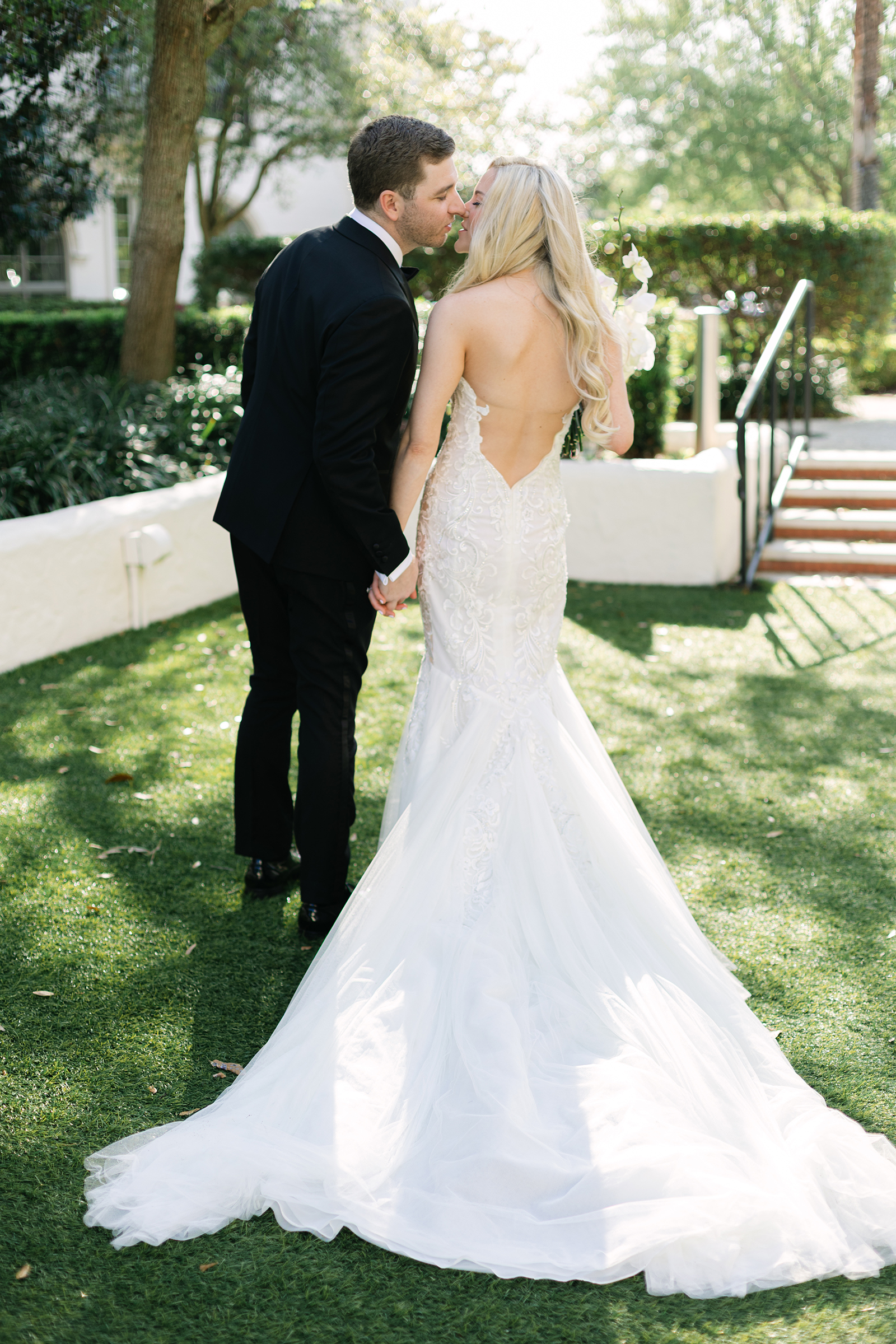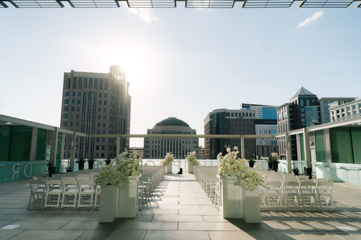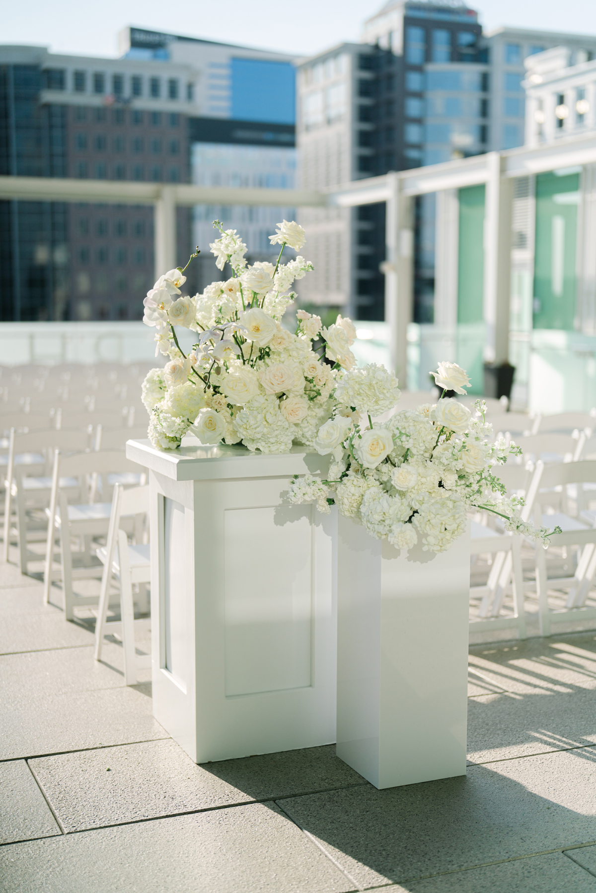 The sunlit shadows sprawled across the floor and the classy floral bouquets filled with white roses and baby breaths seamlessly laced Cassidy and Zack’s Dr. Phillips wedding in a breathtaking way. The surrounding views of downtown Orlando further added a layer of depth to immediately contrast the busyness of city to the unwavering nature of the couple. While the pair stood in front of the alter, all the anticipated thoughts and possible what-ifs seemed to dissipate as they took each other’s hands waiting for the official introduction as Mr. and Mrs. Mattison. This sight truly seemed to be a moment taken out of a romance film and hopefully an ounce of that essence was translated onto this digitally space.