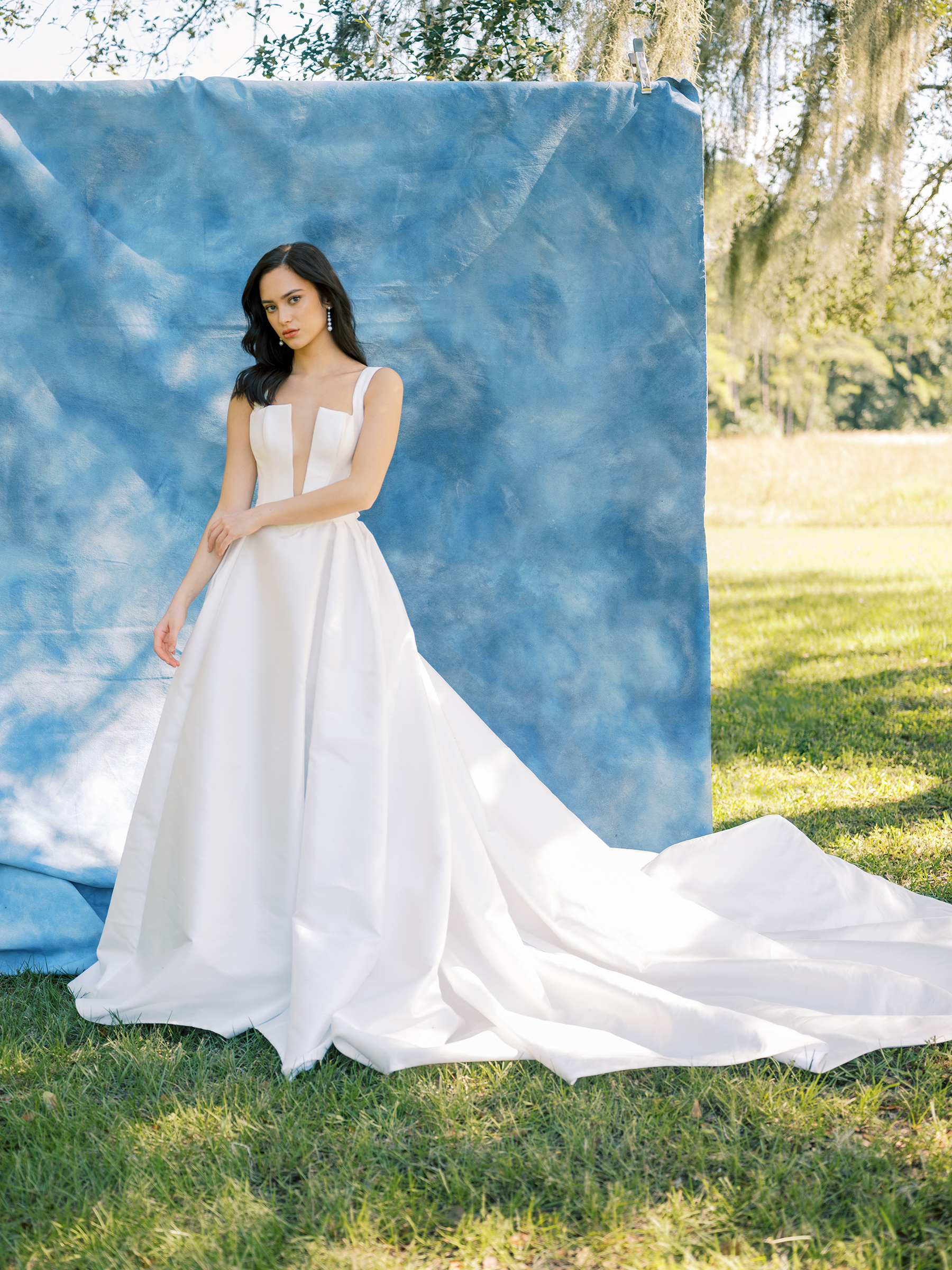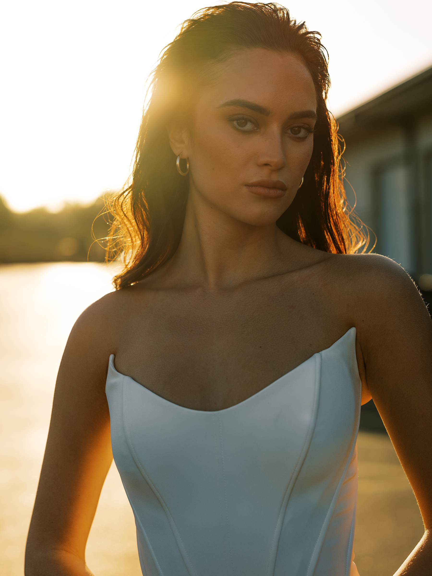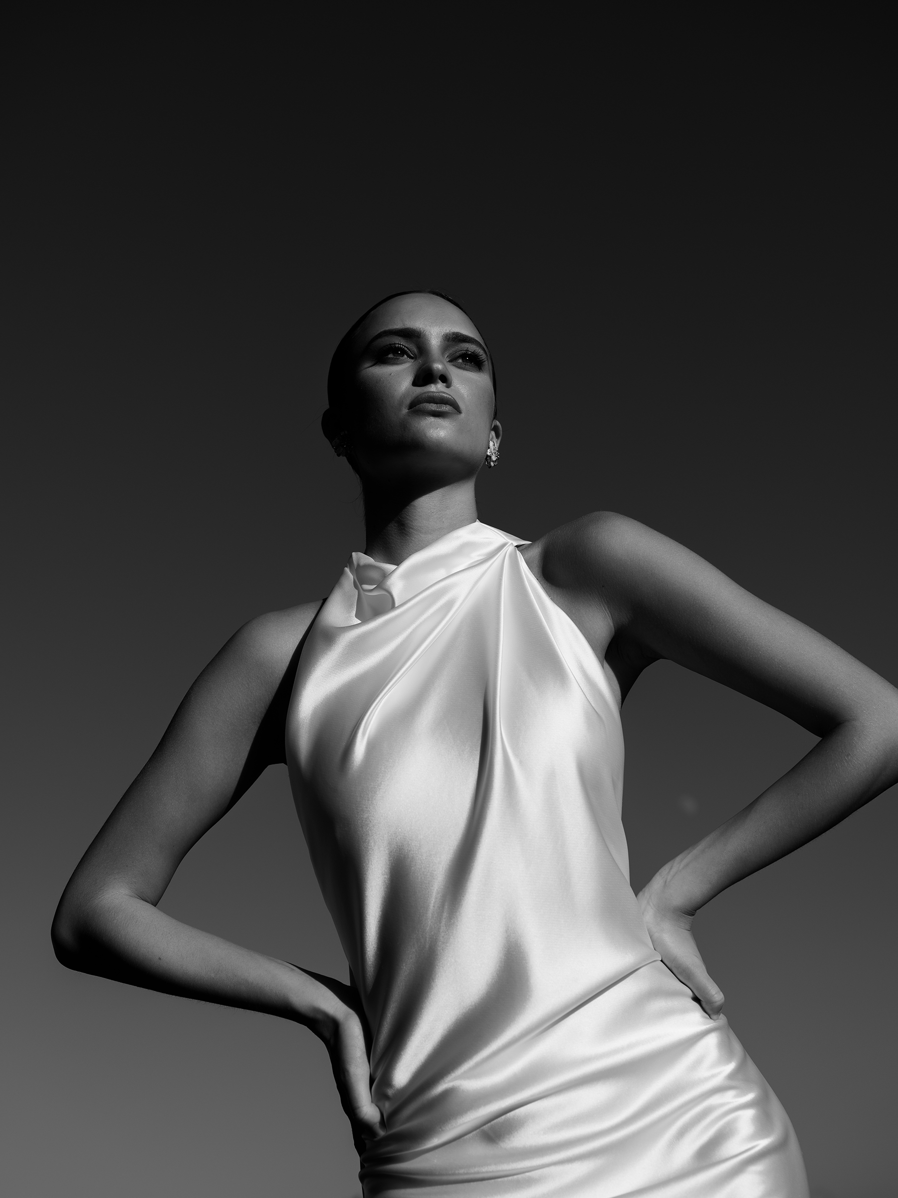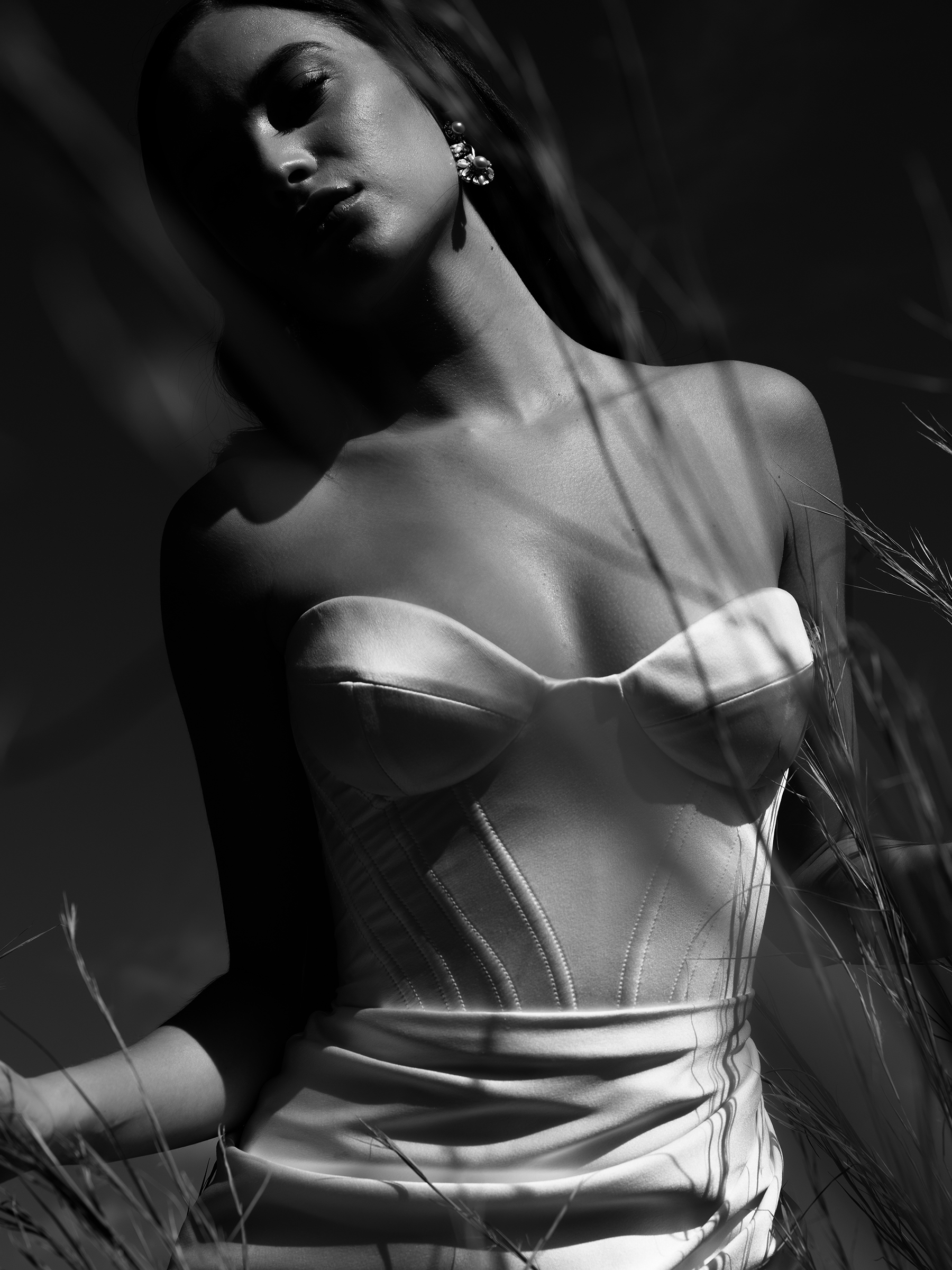 Our vision for this fashion shoot with The Bridal Finery was editorial bridal meets retro twist, captured on my dad’s 1976 film camera. Instead of rushing through the process, we allowed each step to be led with intention. The steady decline of the sun painting soft shadows, the field carrying a quiet hum, and every overlooked detail, became fuel for creating an image that reminded us to pause.