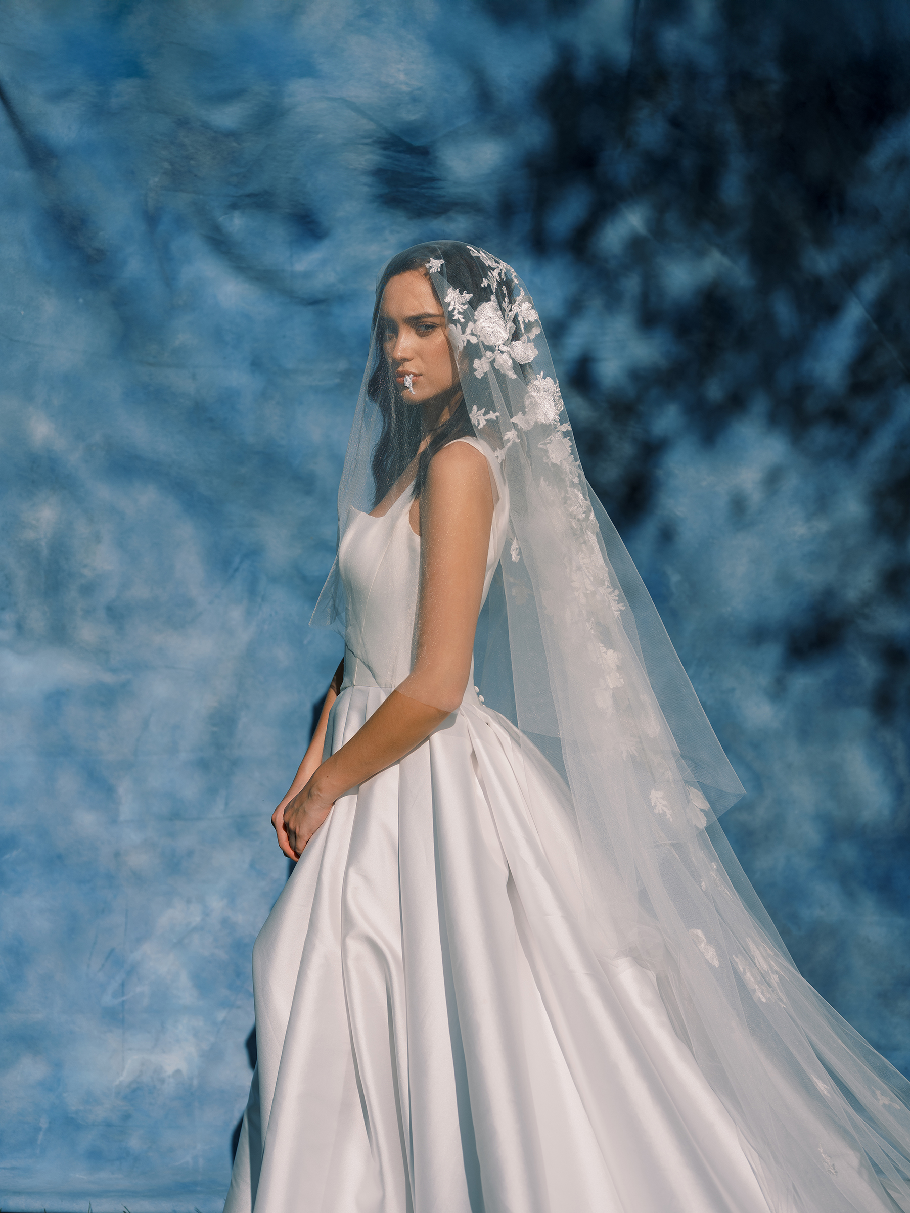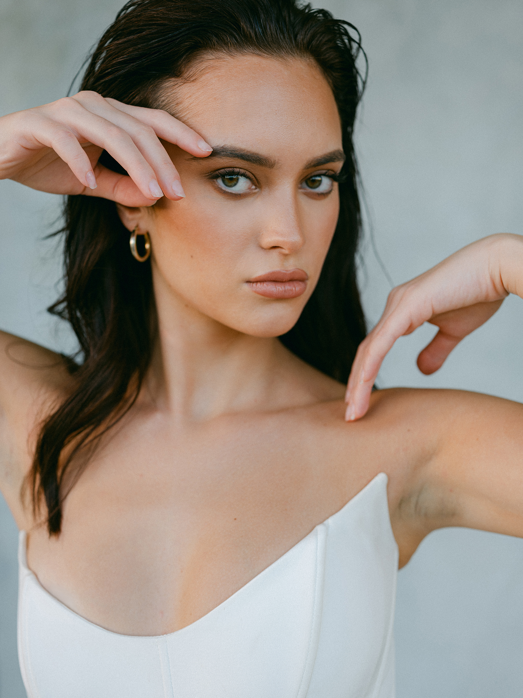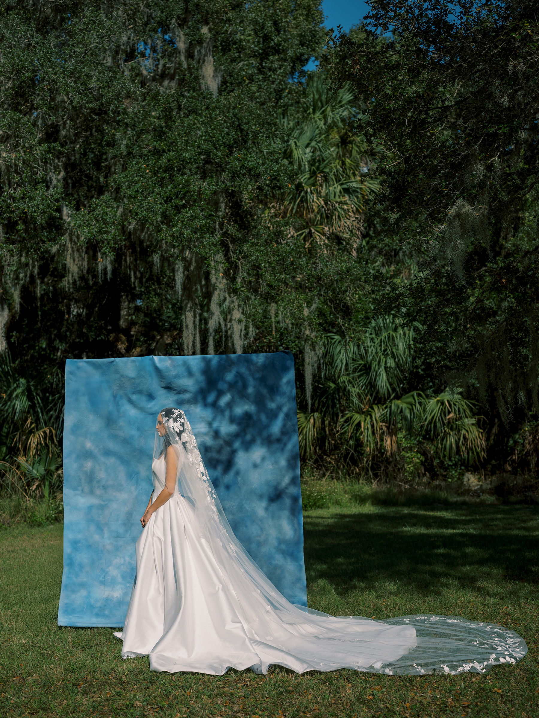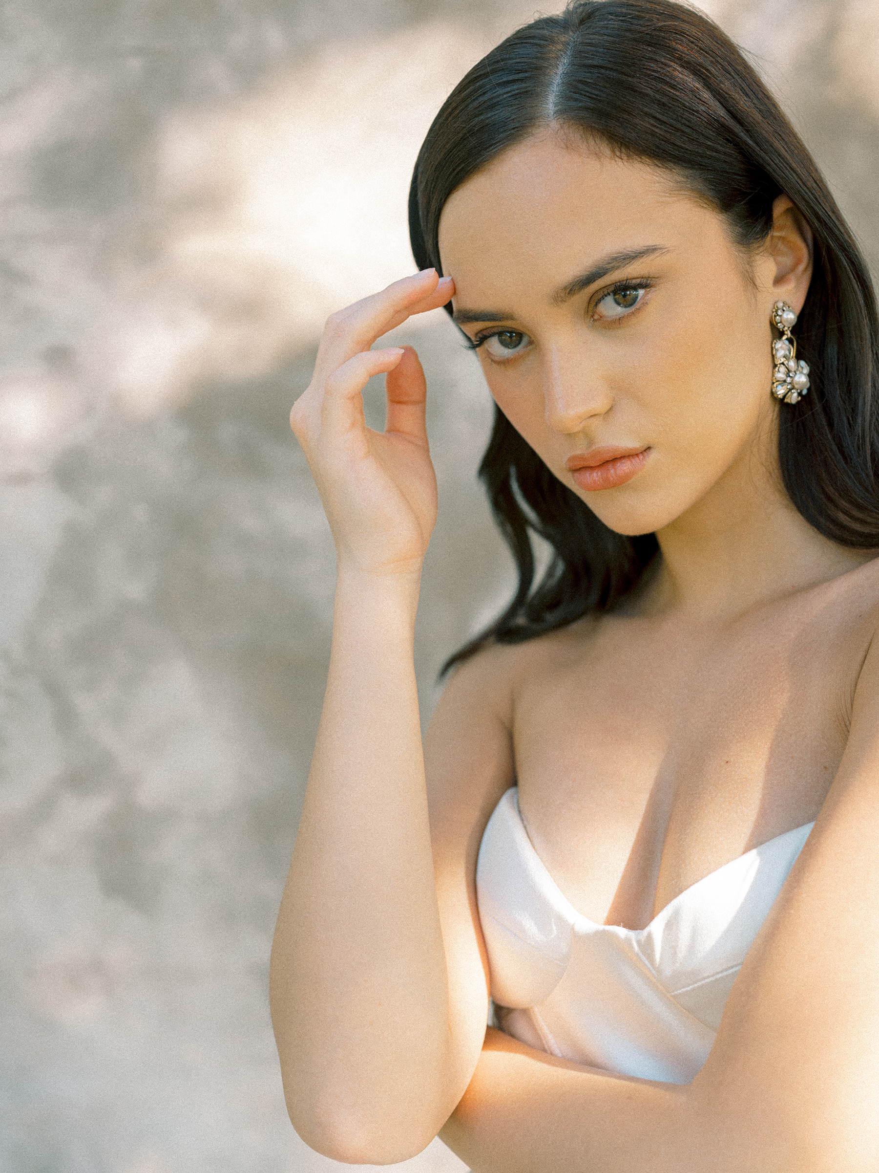 The same calming emotions we strived for within the portraits reflected our own process when bringing them to life. Stepping away from our usual non-stop routine, we replaced the fast-paced camera speed with more intentional choices, ensuring that each frame embodied the desired feeling of nostalgia woven with editorial bridal fashion.
