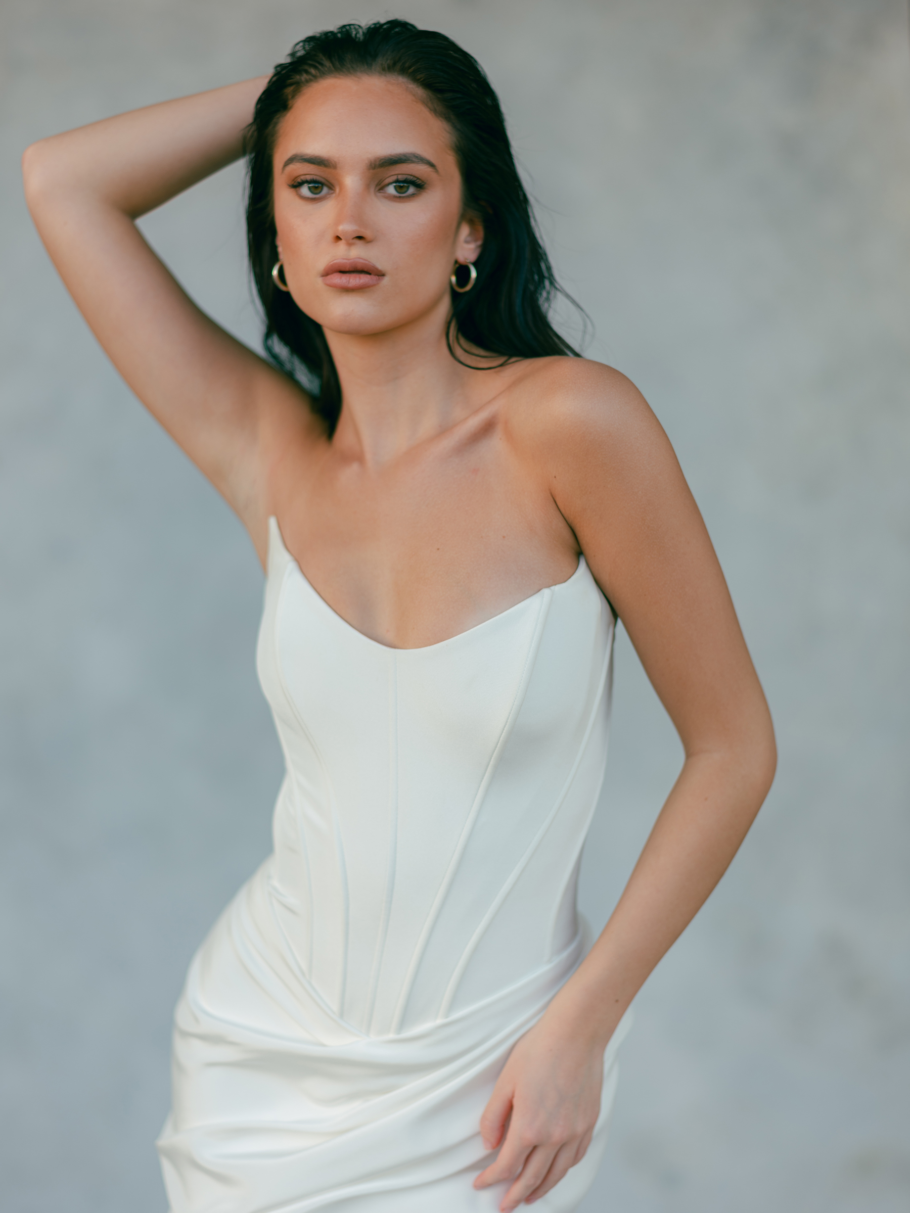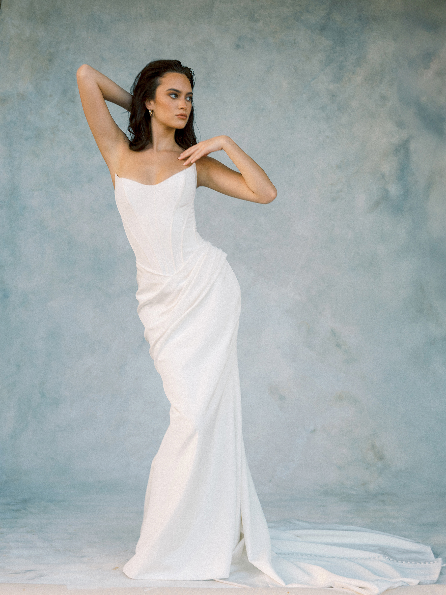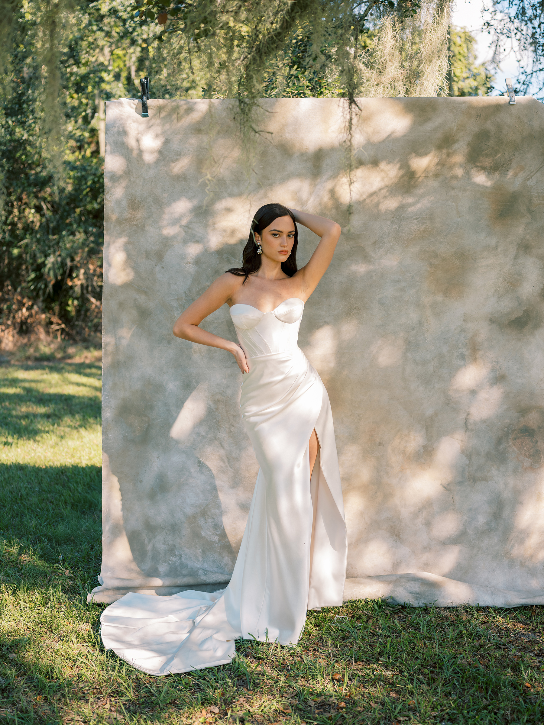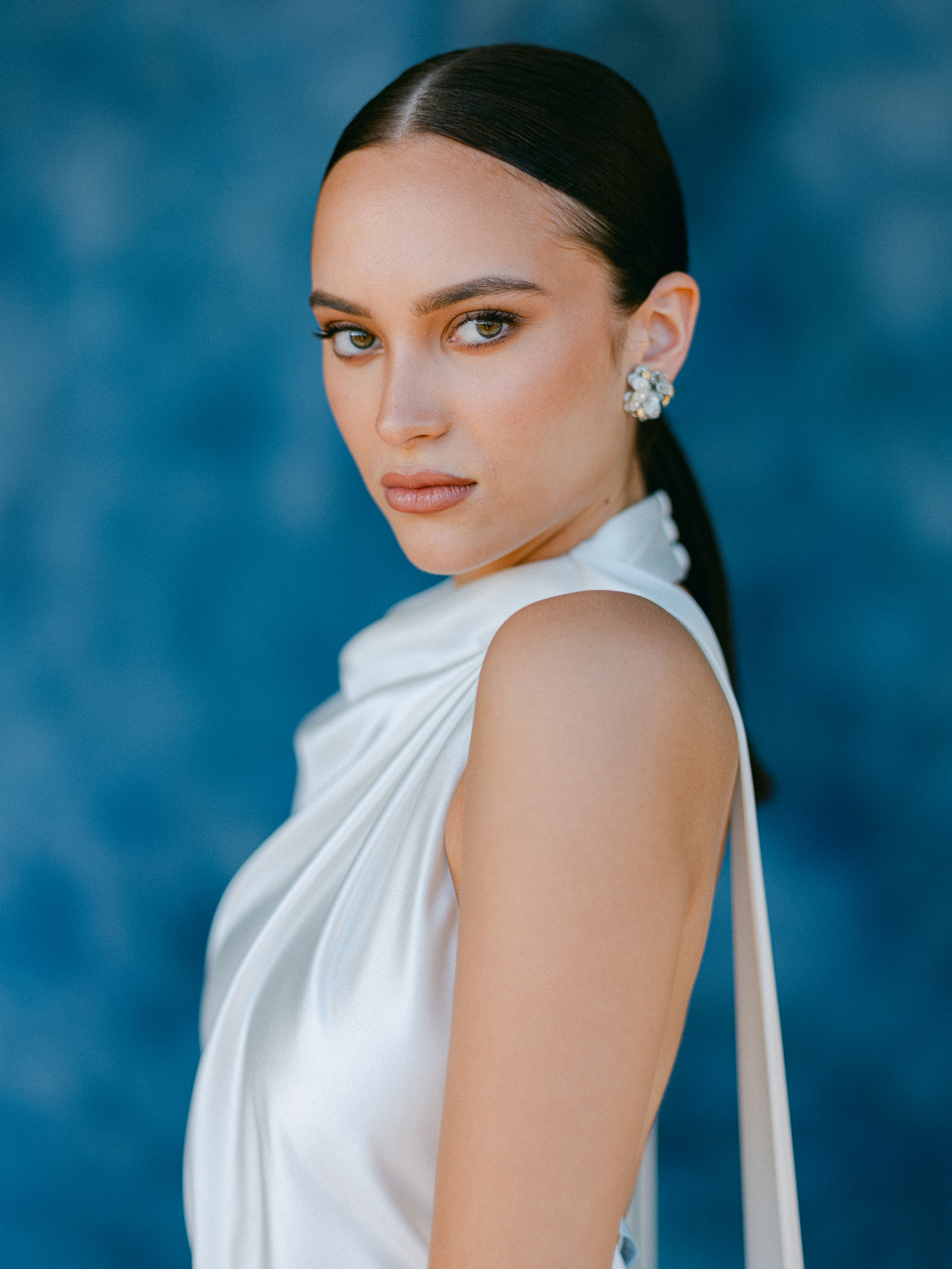 The same calming emotions we strived for within the portraits reflected our own process when bringing them to life. Stepping away from our usual non-stop routine, we replaced the fast-paced camera speed with more intentional choices, ensuring that each frame embodied the desired feeling of nostalgia woven with editorial bridal fashion.