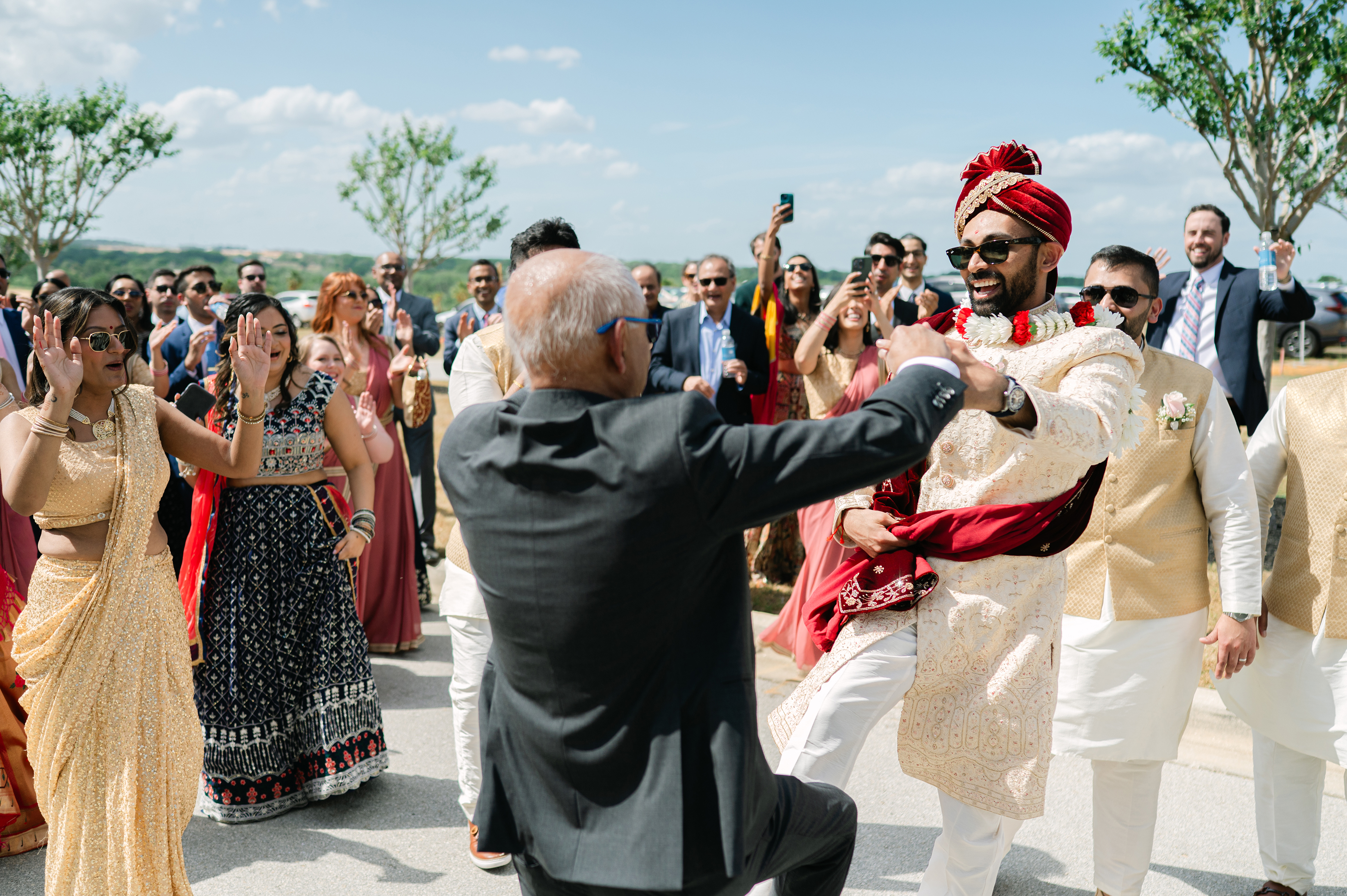 Kayla and Nikesh wanted their wedding to be heavily infused with their rich Indian heritage as they saw this as a way to truly honor their unique background and bring together their families. One of the specific traditions they wanted to showcase included the baraat and family portraits on the mandap, both of which created a touch of intimacy with the couple’s loved ones. They also wore traditional attire that was paired with vibrancy and rich fabrics that translated for a bright future for the couple.