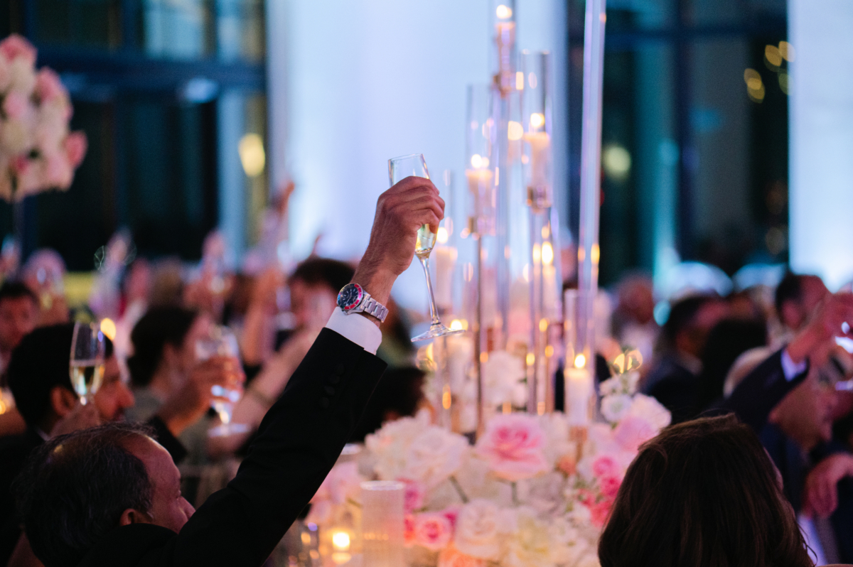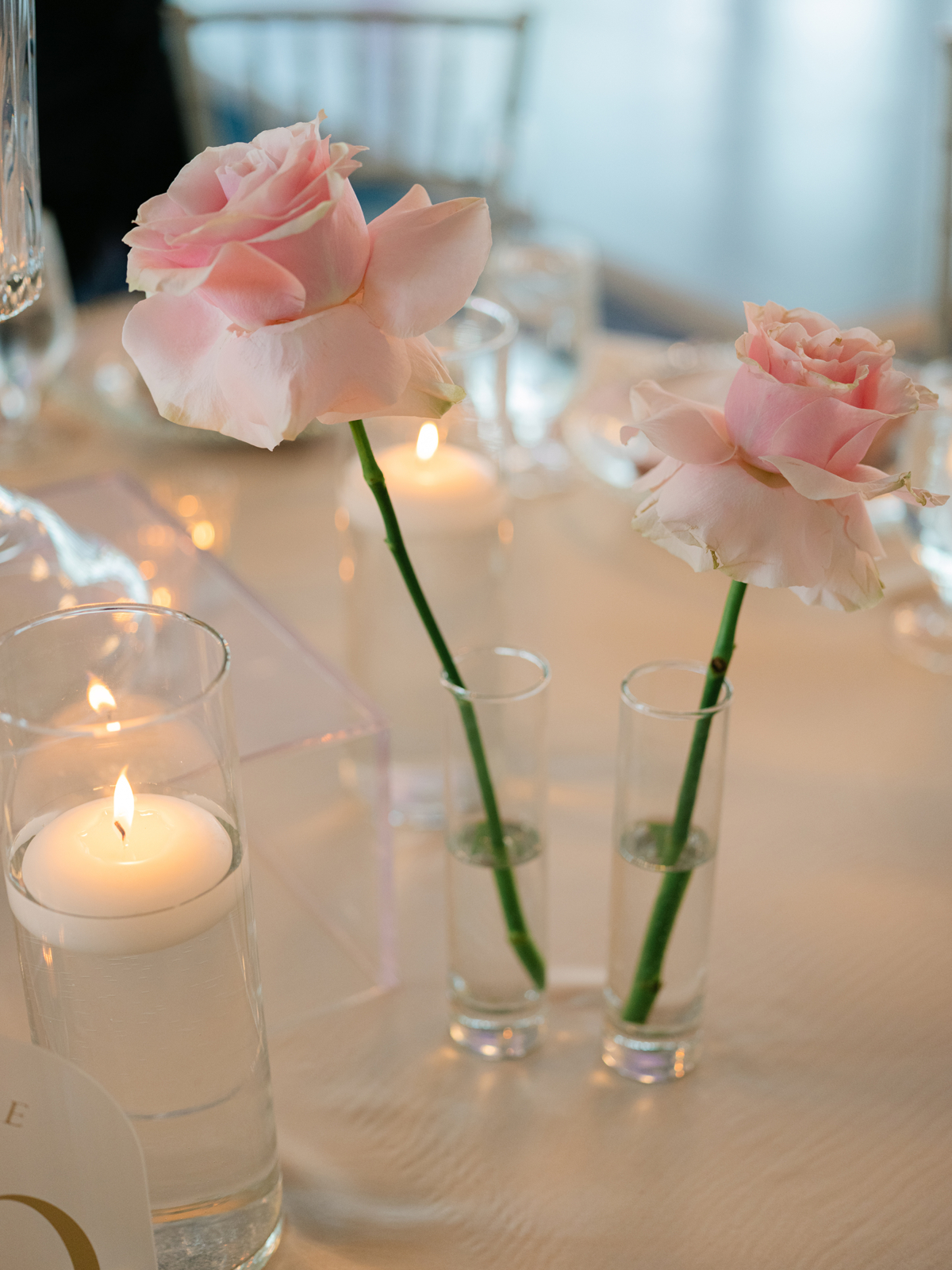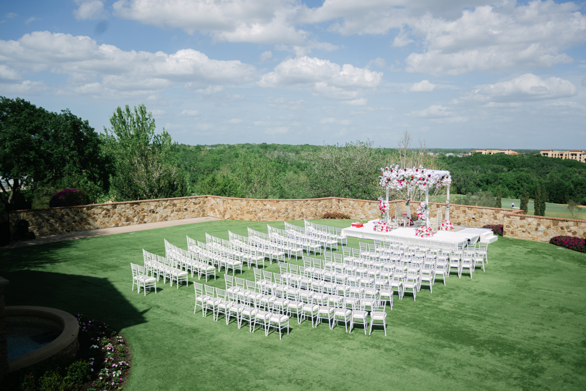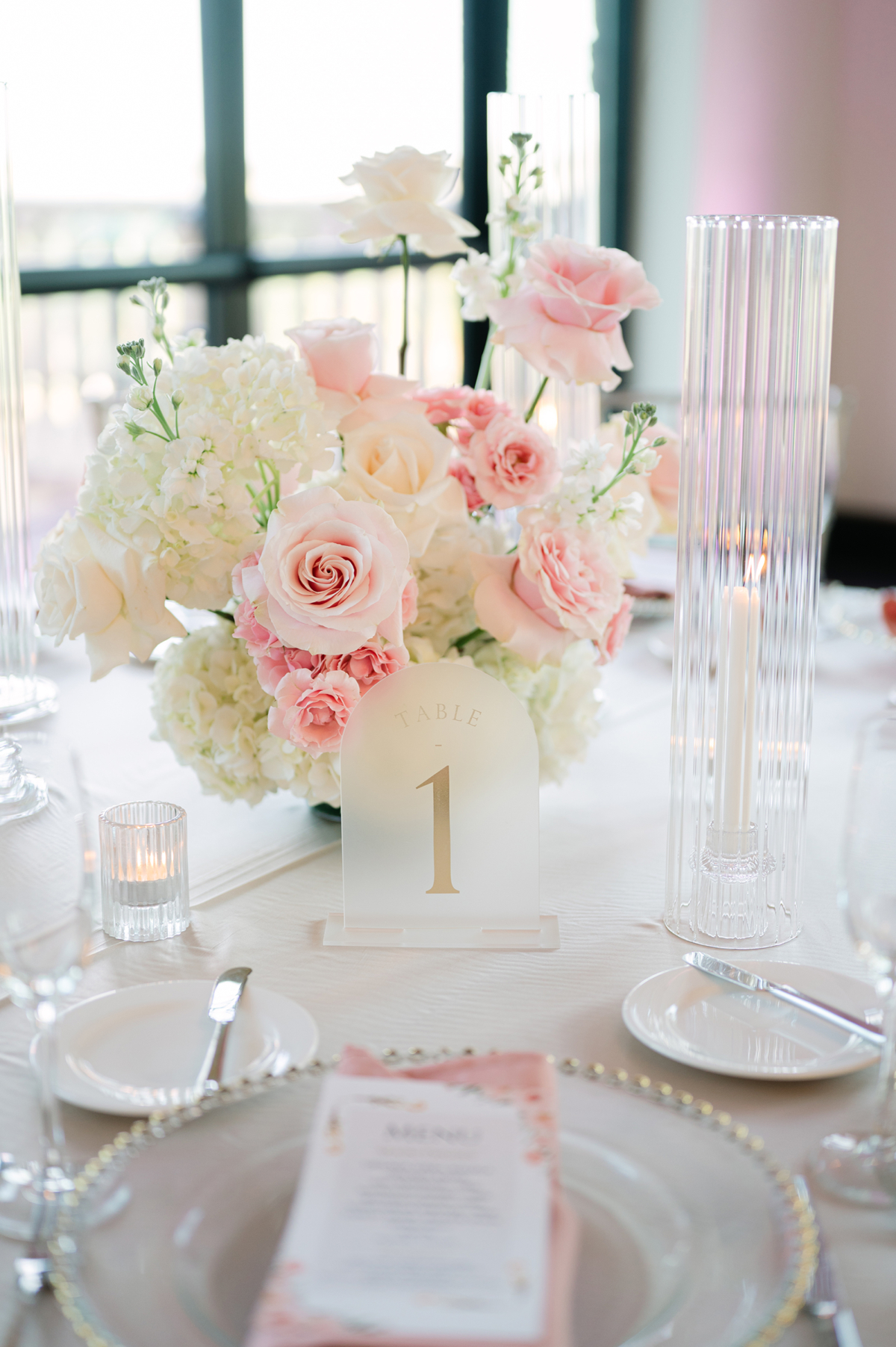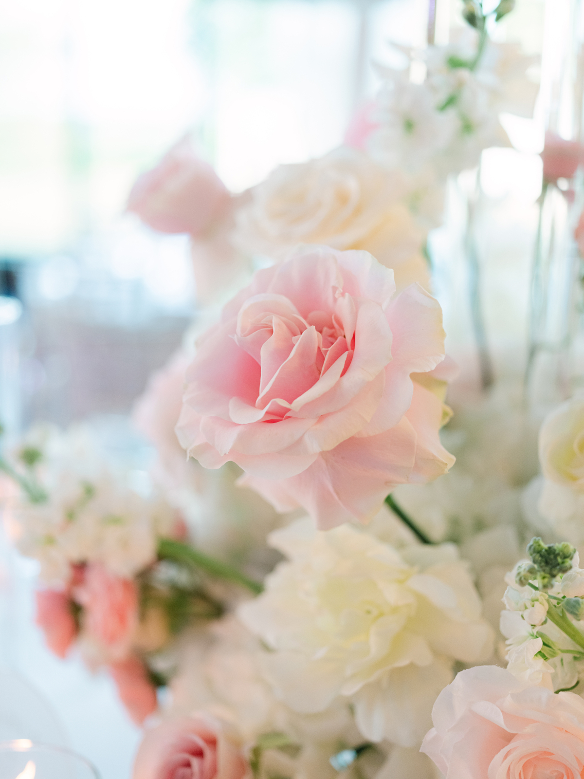 Soft pinks and whites with candlelight lit the Bella Collina Ballroom for their reception. Guests dined on traditional Indian cuisine, thoughtfully curated by the couple with their families.