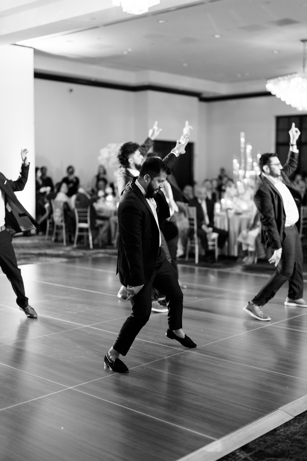 Kayla and Nikesh’s wedding was nothing less than pure luxury, with dreamy white details partnered with rich red and gold accents that seemed to perfectly compliment the lavish gardens present at Bella Collina. The abundance of florals by RJ Glam Rentals added a delicate touch, while the traditional elements, such as a lively baraat and family portraits captured on the mandap, beautifully tied the ceremony together. The subtle exchanges between the couple, from gentle hand-holding and loved-filled glances, could be felt throughout the day and created a perfect transition into the anticipated intimacy awaiting at the reception.