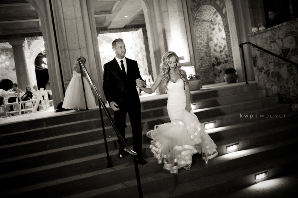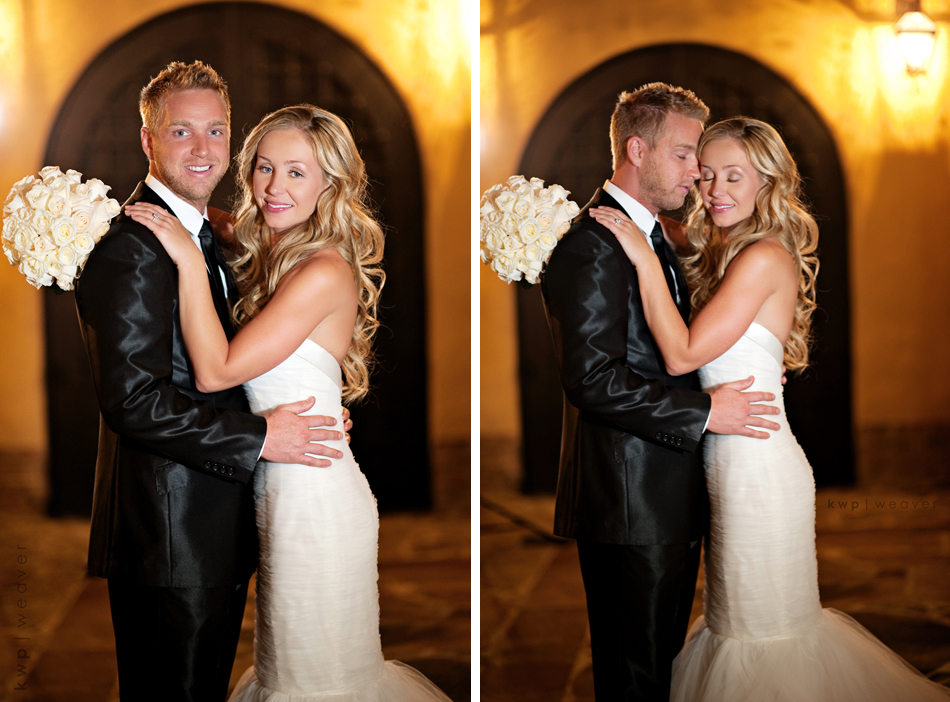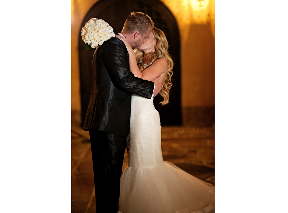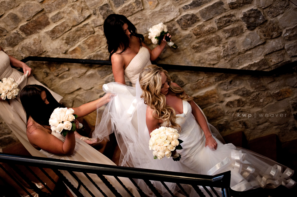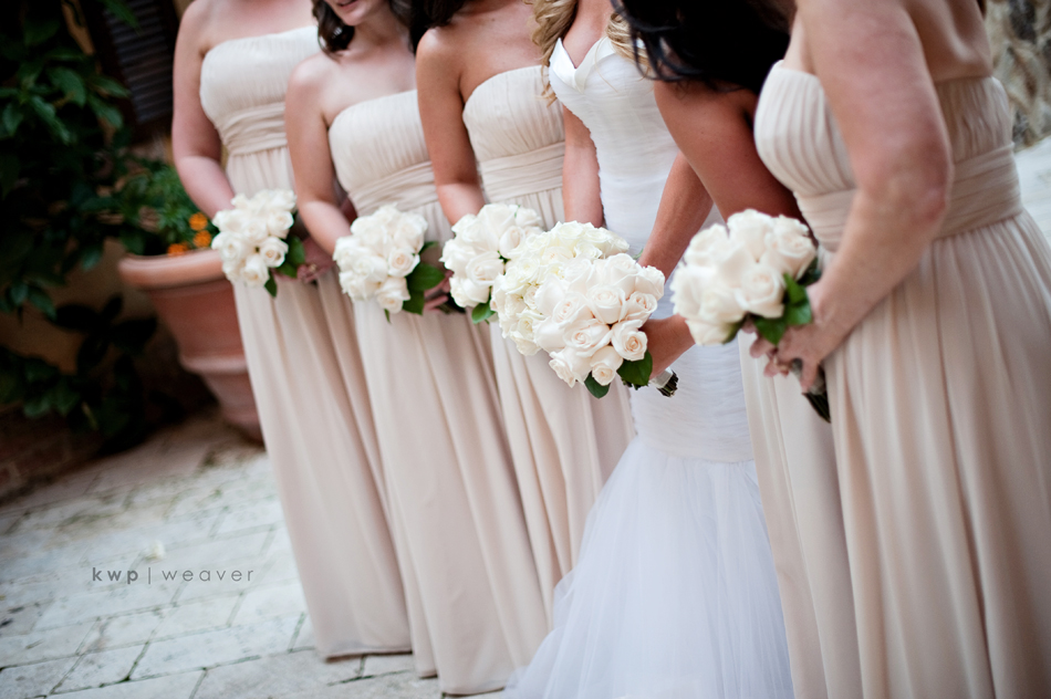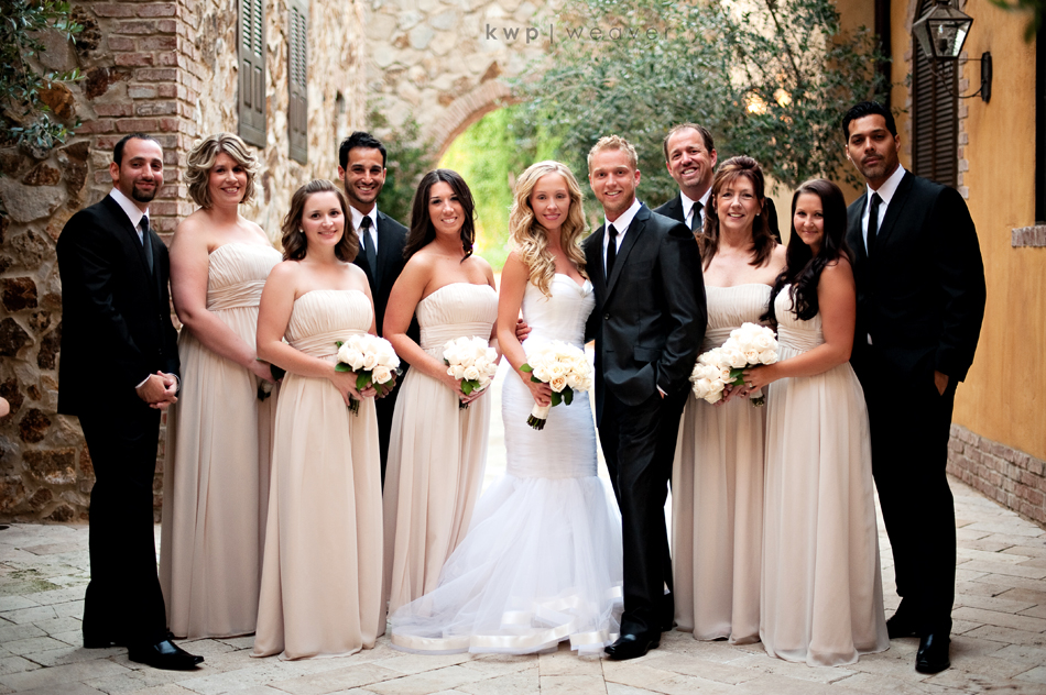 In perfect style, Jessica chose light tan bridesmaids gowns and white roses to compliment the setting at Bella Collina.