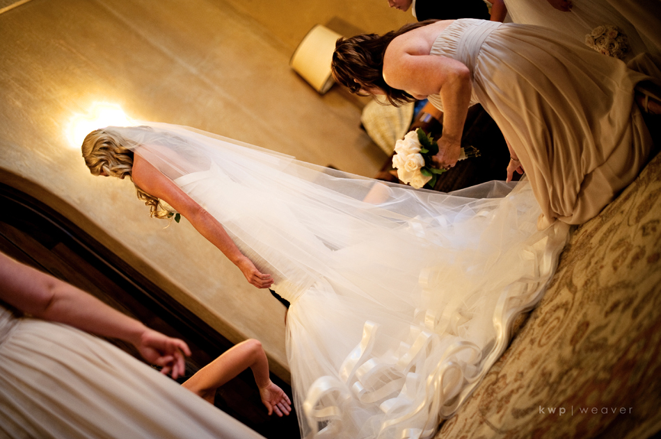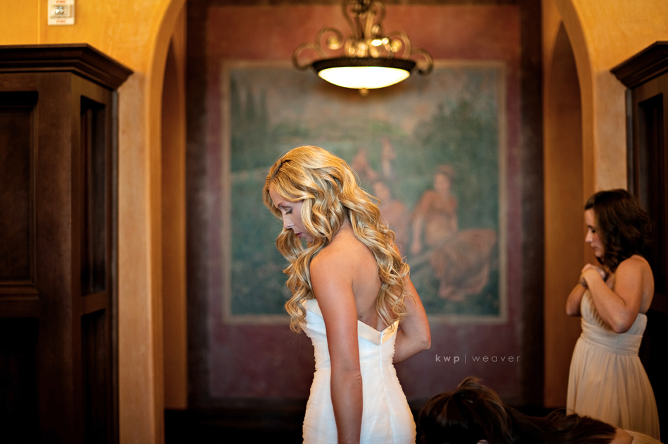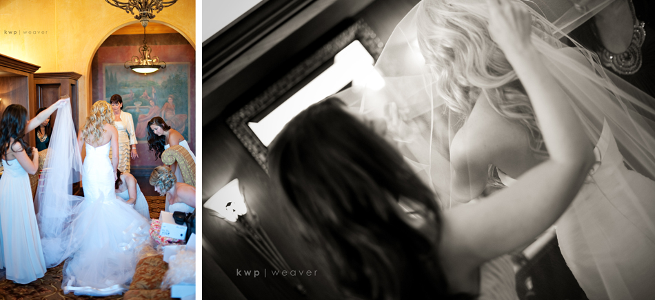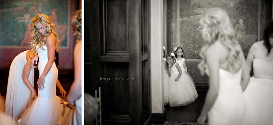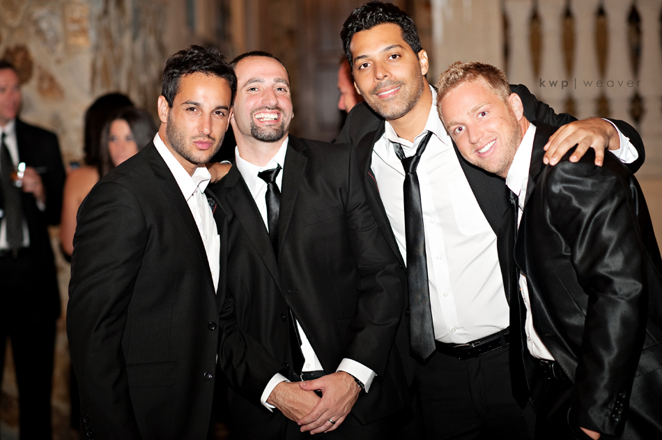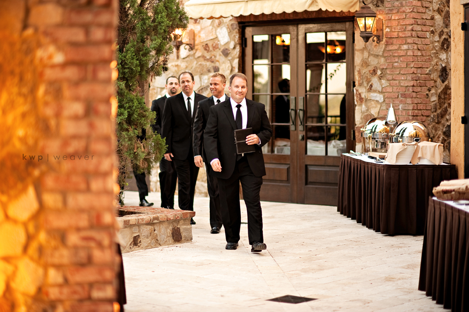 In perfect style, Jessica chose light tan bridesmaids gowns and white roses to compliment the setting at Bella Collina.