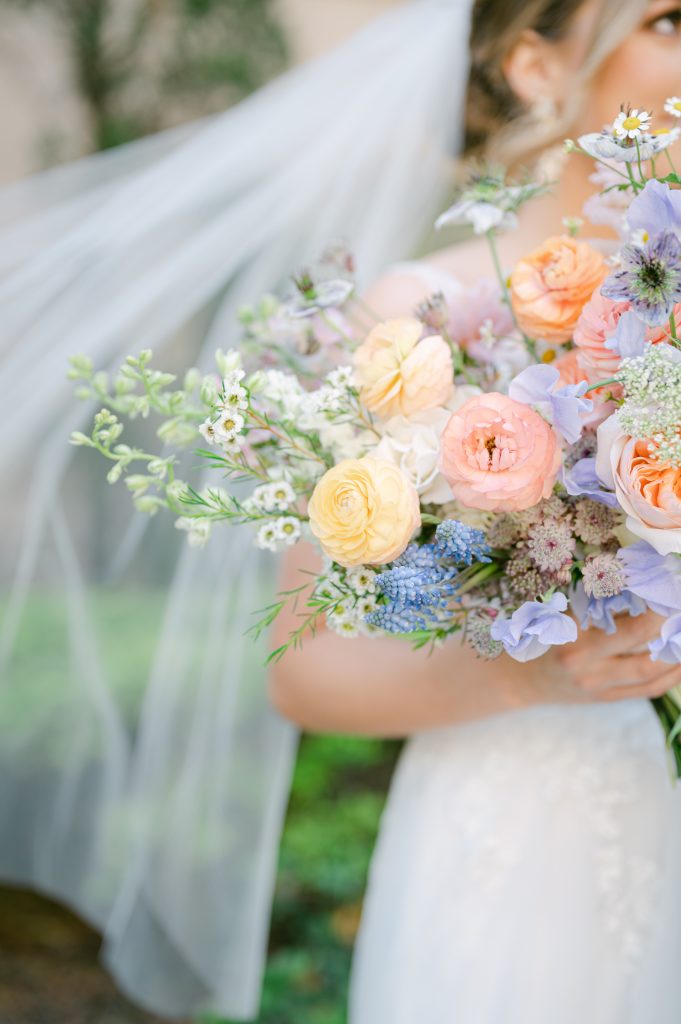 Bradly and Emma’s Winter Park Farmer’s Market wedding was a whimsical wildflower dream! Their wedding was full of pastels and romantic designs. Once I found out their florist was going to be Velvet & Twine I knew the details were going to be stunning! Each flower was carefully selected with the romantic and pastel aesthetic in mind. From the groom’s boutonniere to the long table centerpieces all of the flowers helped complete the wedding day vibe! Bradly wore a navy suit, with brown shoes and a long patterned tie. While Emma wore a lace A-line dress with a lightly bustier lace top and a beautiful low cut back! Prior to the ceremony, the wedding party got ready at the Alfond Inn and maybe even got in a quick game of chess! Their ceremony was a quiet, intimate gathering held at the First Presbyterian Church of Orlando. Following the ceremony, their guests headed over to the Winter Park Farmer’s Market to begin cocktail hour! The couple added some personal touches to the cocktail hour. They had an old rotary phone that the guest could leave messages to the bride and groom instead of a traditional guest book. They also had their escort cards planted in a garden bed to continue the wildflowers feel. Their reception was beautiful! Each table had an array of florals displayed. Their attention to detail is what really brought everything together, from the patterned napkins to the carefully picked floral colors! After toasts and dinner, the party continued with their DJ, Fyer Fly Productions. Everyone danced the night away until their fun bubble send-off! The newlyweds headed off to their honeymoon in St. Lucia for a sunny celebration!