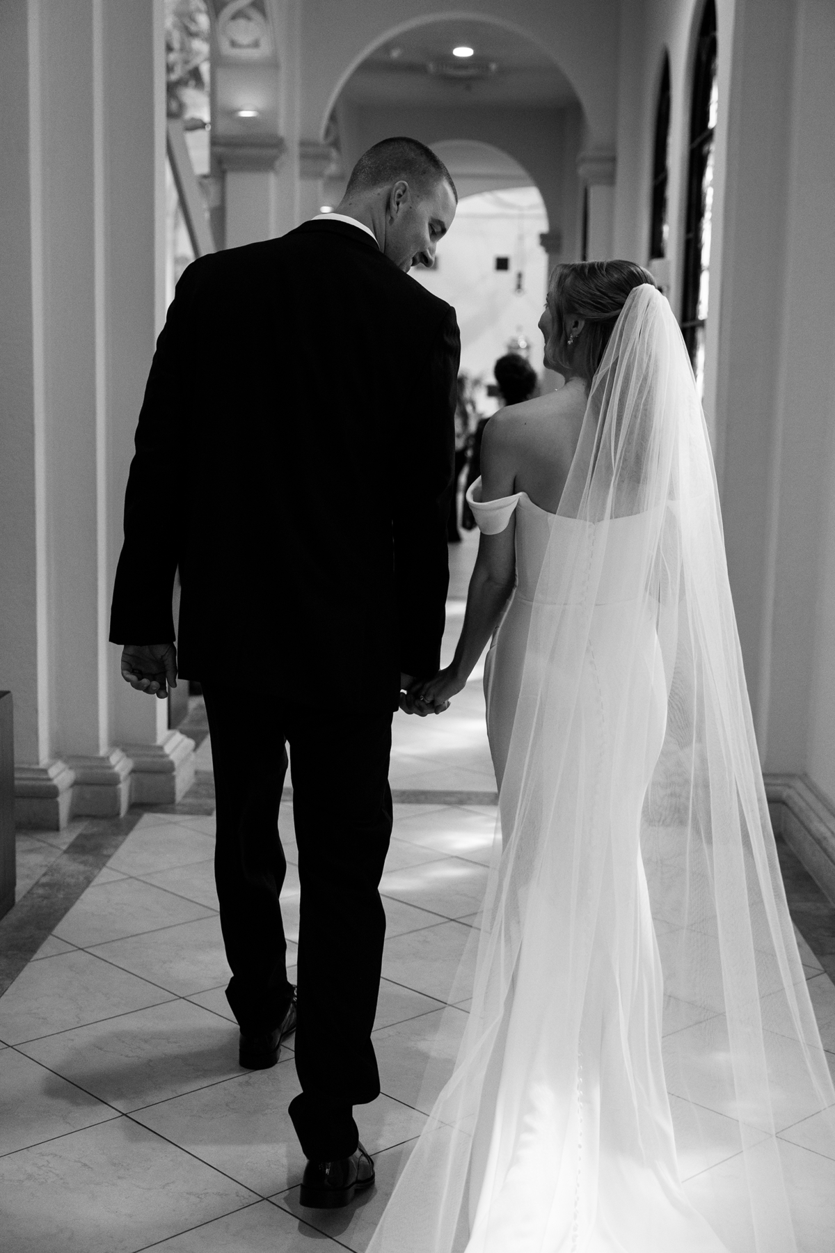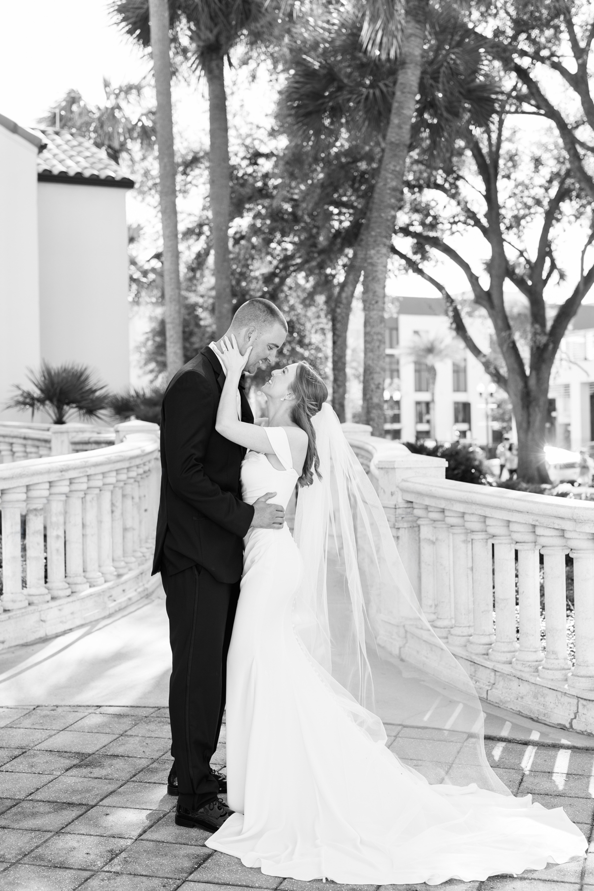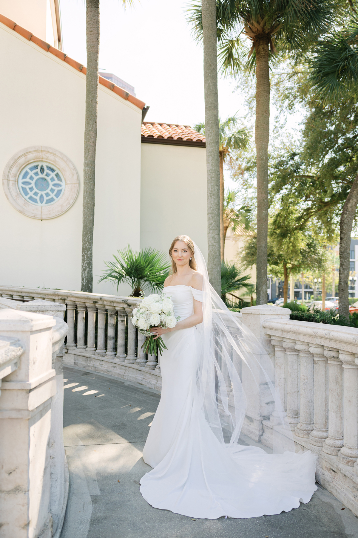 Laura and Kevin decided to celebrate their marriage at the St. James Cathedral cozily nestled in the downtown Orlando area. As the couple’s loved ones awaited for the ceremony to begin, the breathtaking details of the cathedral only added to the excitement. The walls and even the ceiling beautifully showed artwork that could make anyone stop and stare with complete bewilderment. Meanwhile, the alter’s more simplistic look truly added a level of contrast that brought everyone’s focus toward the lovely couple.
