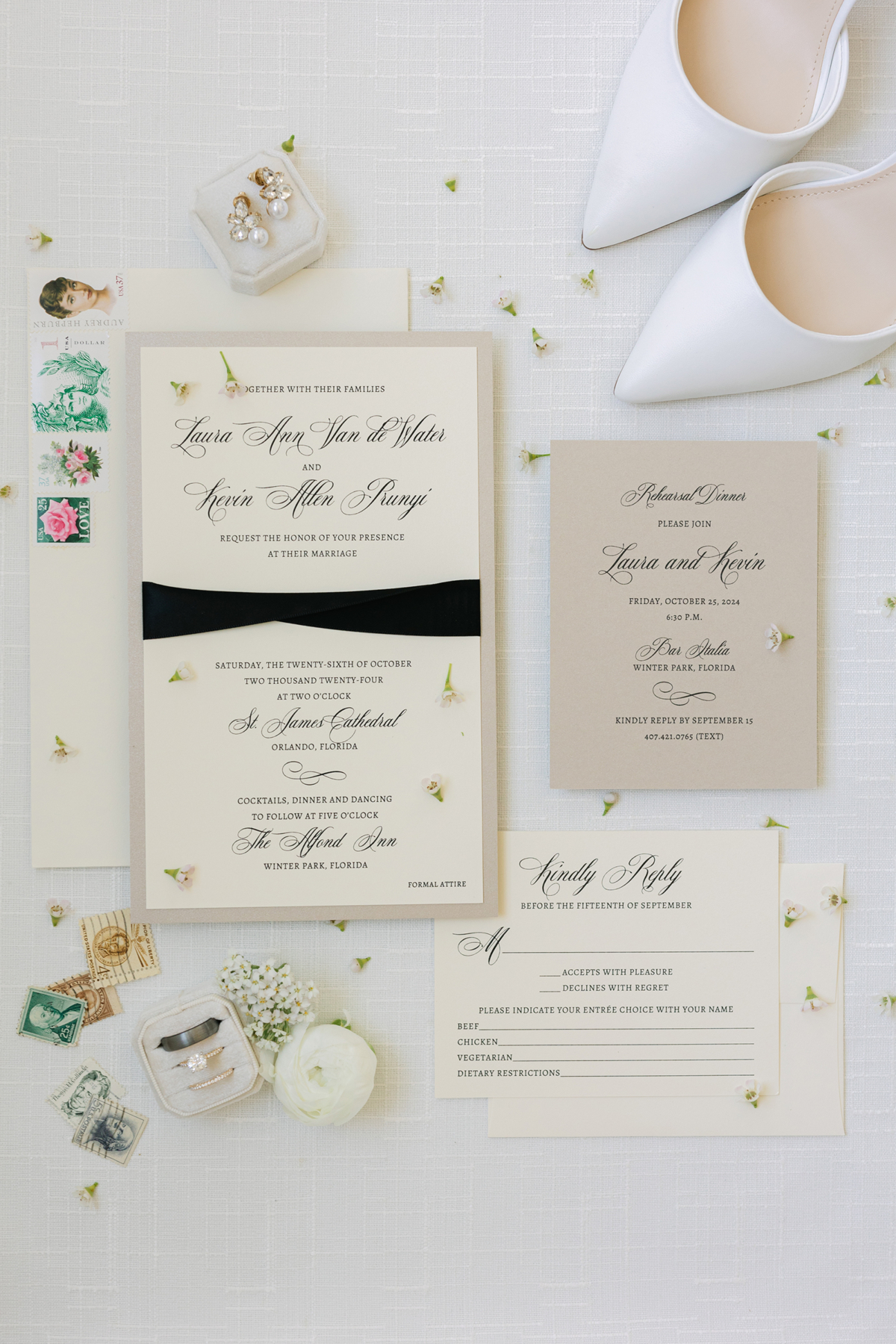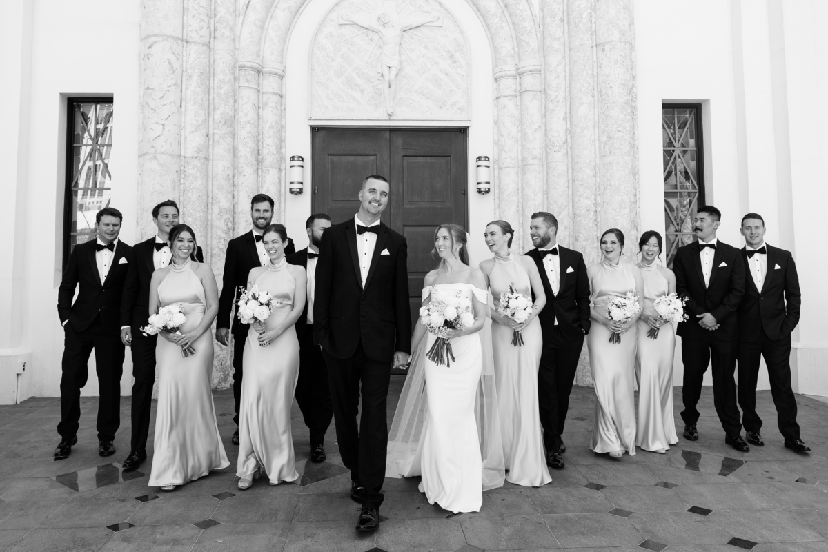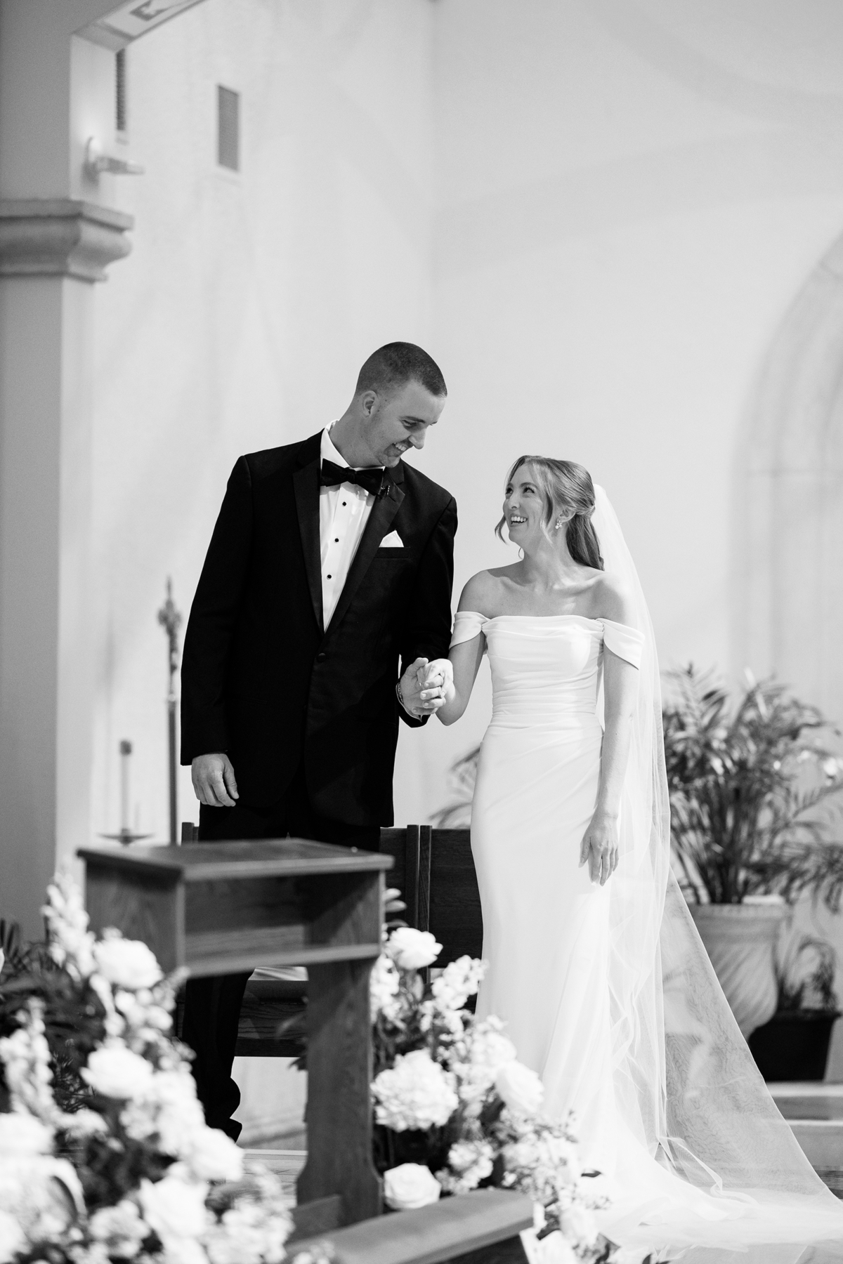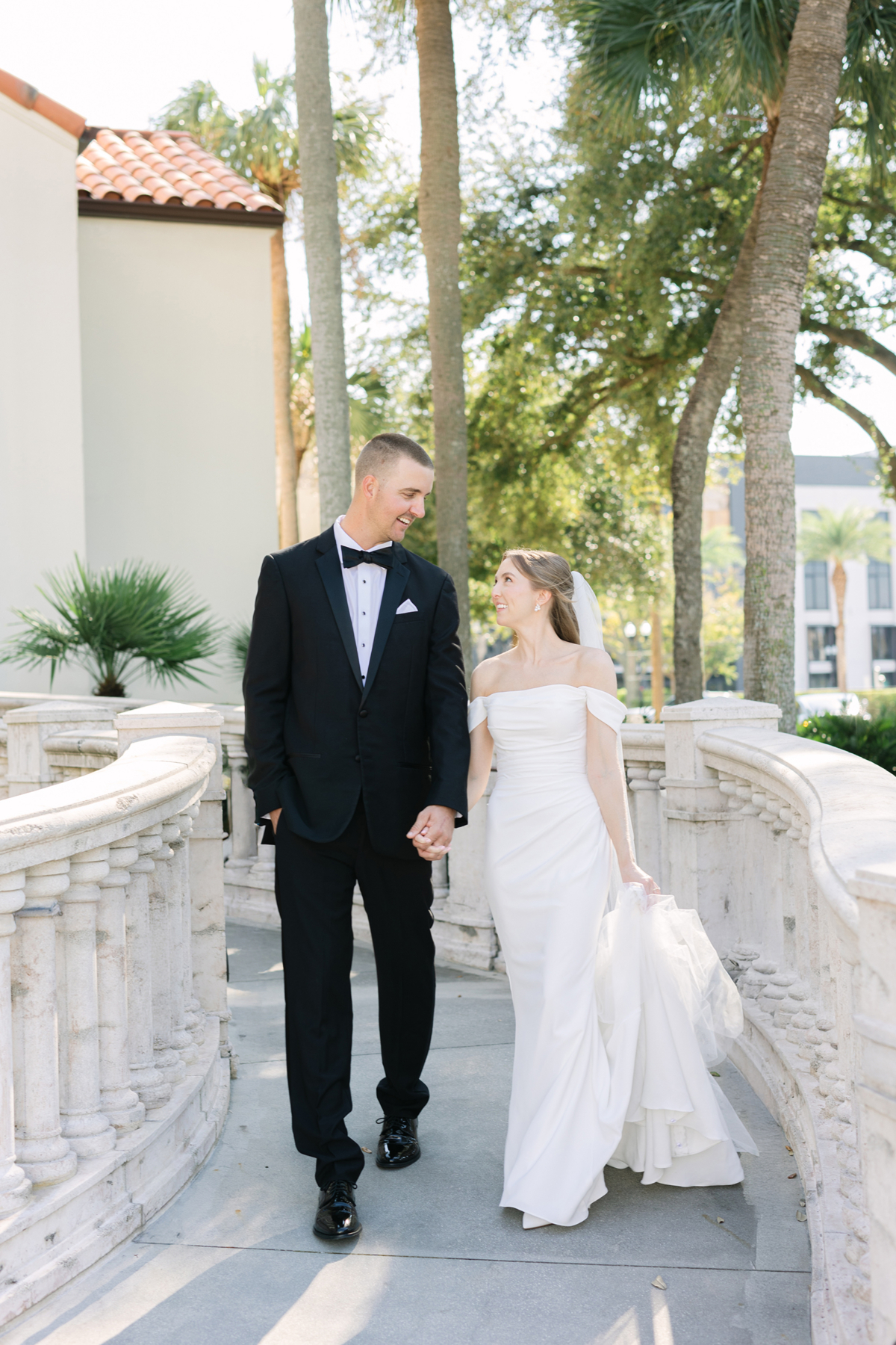 Laura and Kevin decided to celebrate their marriage at the St. James Cathedral cozily nestled in the downtown Orlando area. As the couple’s loved ones awaited for the ceremony to begin, the breathtaking details of the cathedral only added to the excitement. The walls and even the ceiling beautifully showed artwork that could make anyone stop and stare with complete bewilderment. Meanwhile, the alter’s more simplistic look truly added a level of contrast that brought everyone’s focus toward the lovely couple.