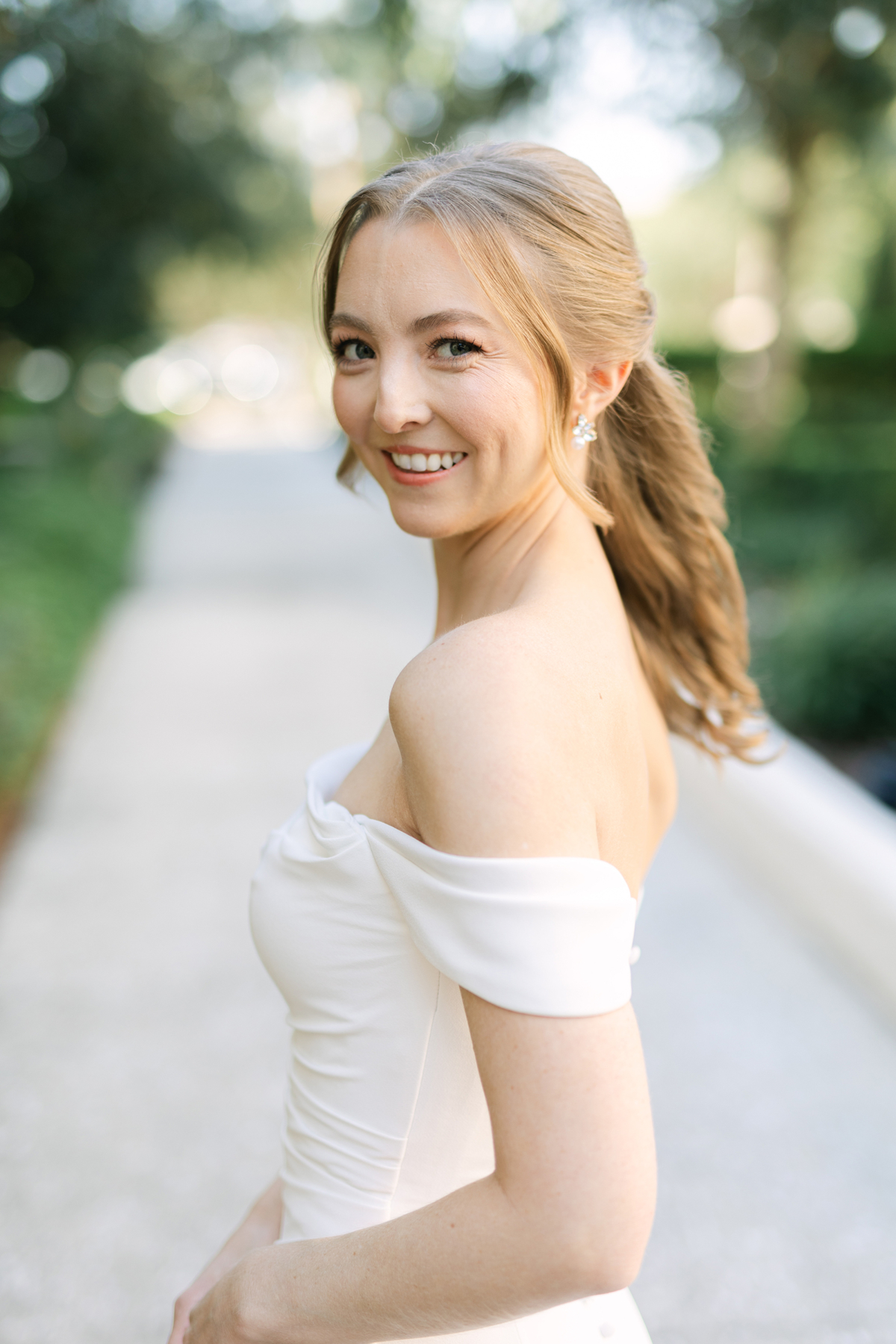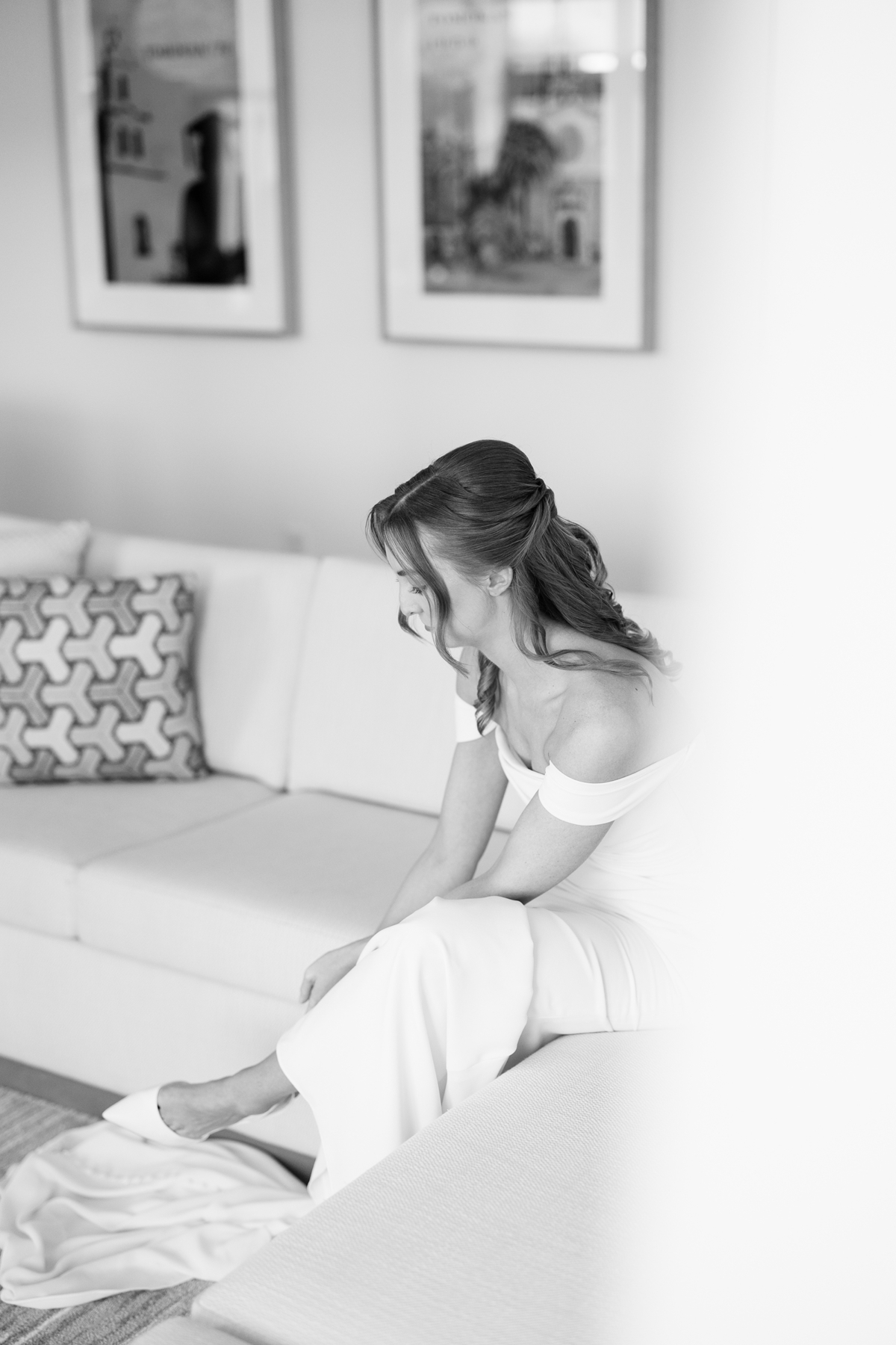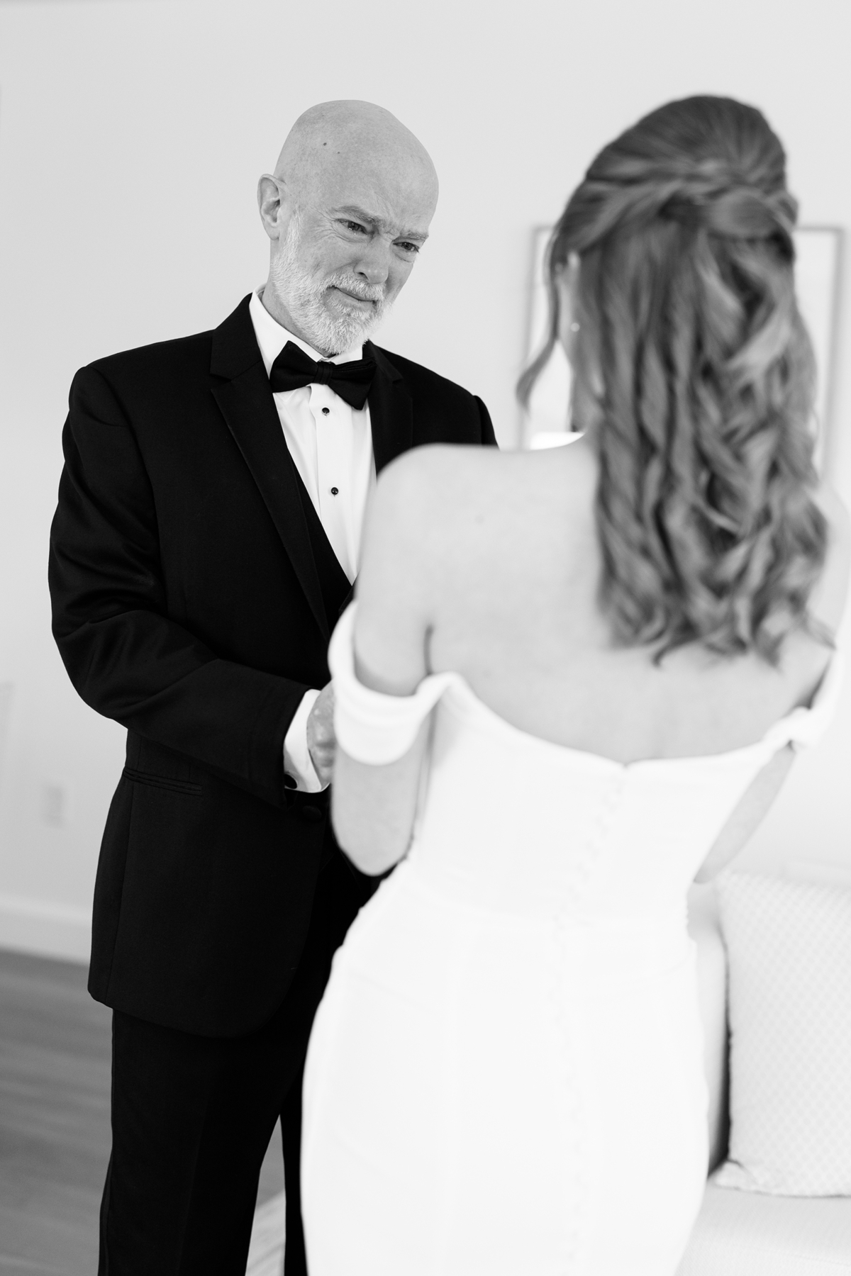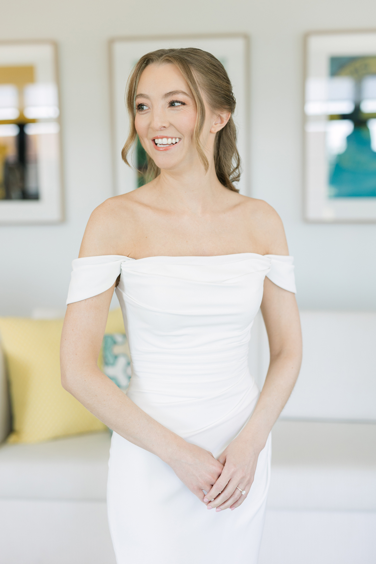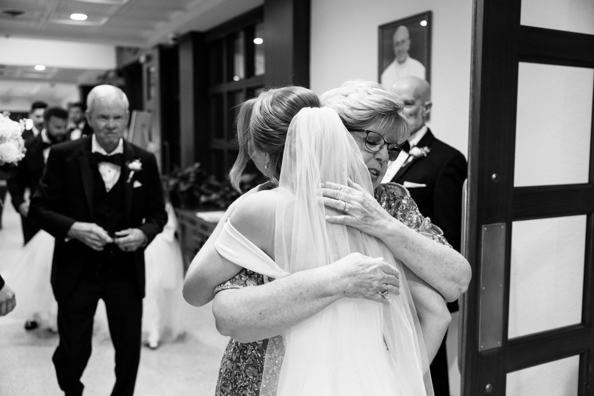 Most people often skip over the preparations leading up to the ceremony, but the intimate moments filled with excited chatter and the supportive gestures from those who have been there for you through it all is what perfectly sets up the celebrations that await. Laura’s bridesmaids surrounded her as she got ready for the big moment that would begin this next chapter of her life. While capturing these sweet, intimate moments, it was clear that the essence of true elegance could be translated through the lens with their matching champagne silk dresses with the feminine touches of a backless moment and high-neck detail. Undeniably, the decision of pairing their outfits with a more simplistic bouquet of white roses and baby breaths delivered an elevated touch that complimented both the bride’s bright personality and her overall sweet appearance.