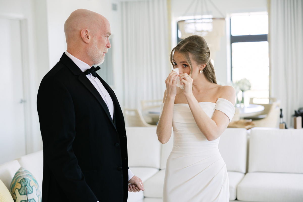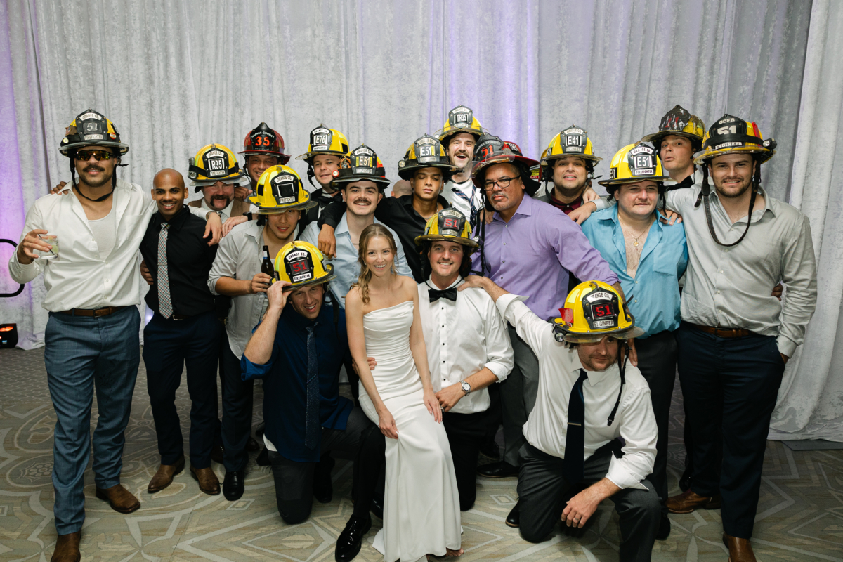 Laura and Kevin envisioned a reception gracefully blending their charming personalities, while adding a layer of depth that brought connection with their loved ones. Needlessly to say, their reception went above and beyond to perfectly execute their wishes. The chosen florals and table details brilliantly carried the neutral color scheme with hints of champagne beige into the evening. Since this was a more intimate portion of their celebration, the added decision to incorporate Kevin’s firefighter background by designating a table to lay his and his fellow friends’ helmuts made everyone feel instantly connected with the couple. Similar to their love story carried with endless surprises, they began the night with sparklers that lit up the dance floor during their first dance. Through the many tears and endearing exchanges, this night truly brought all the details together in a way that seemingly captured their love.