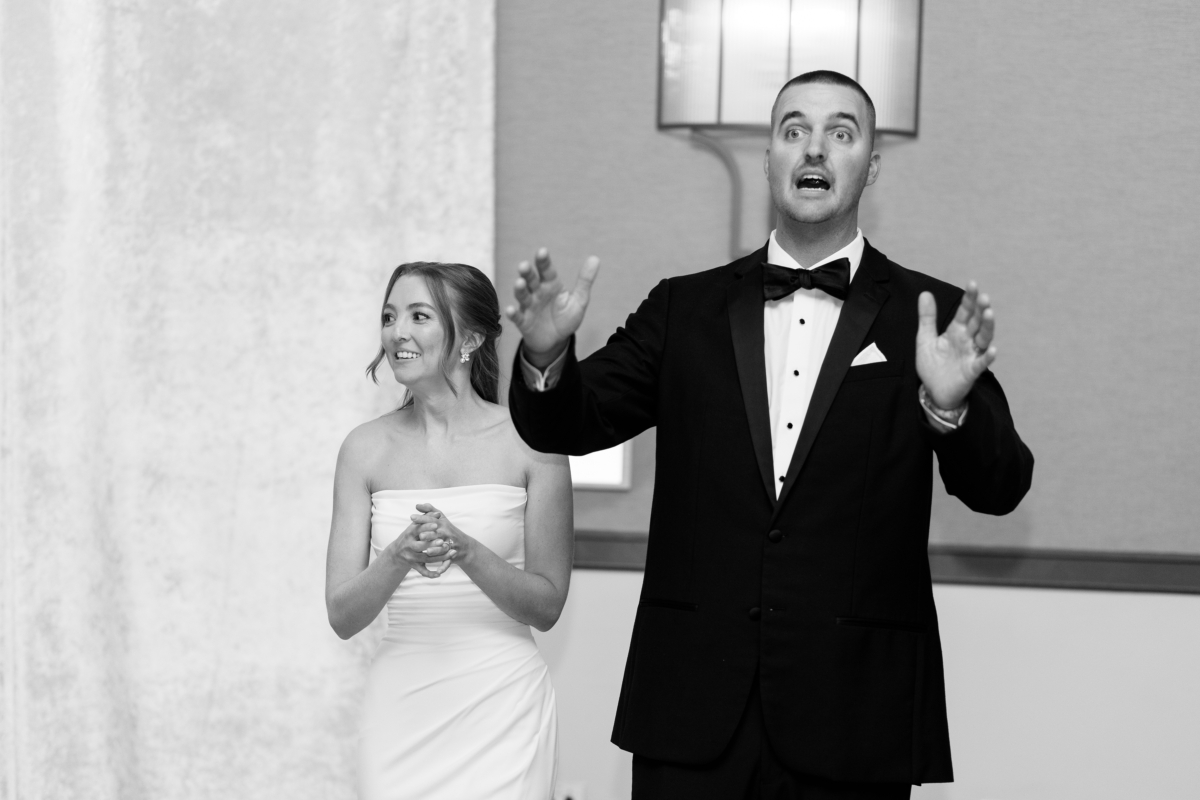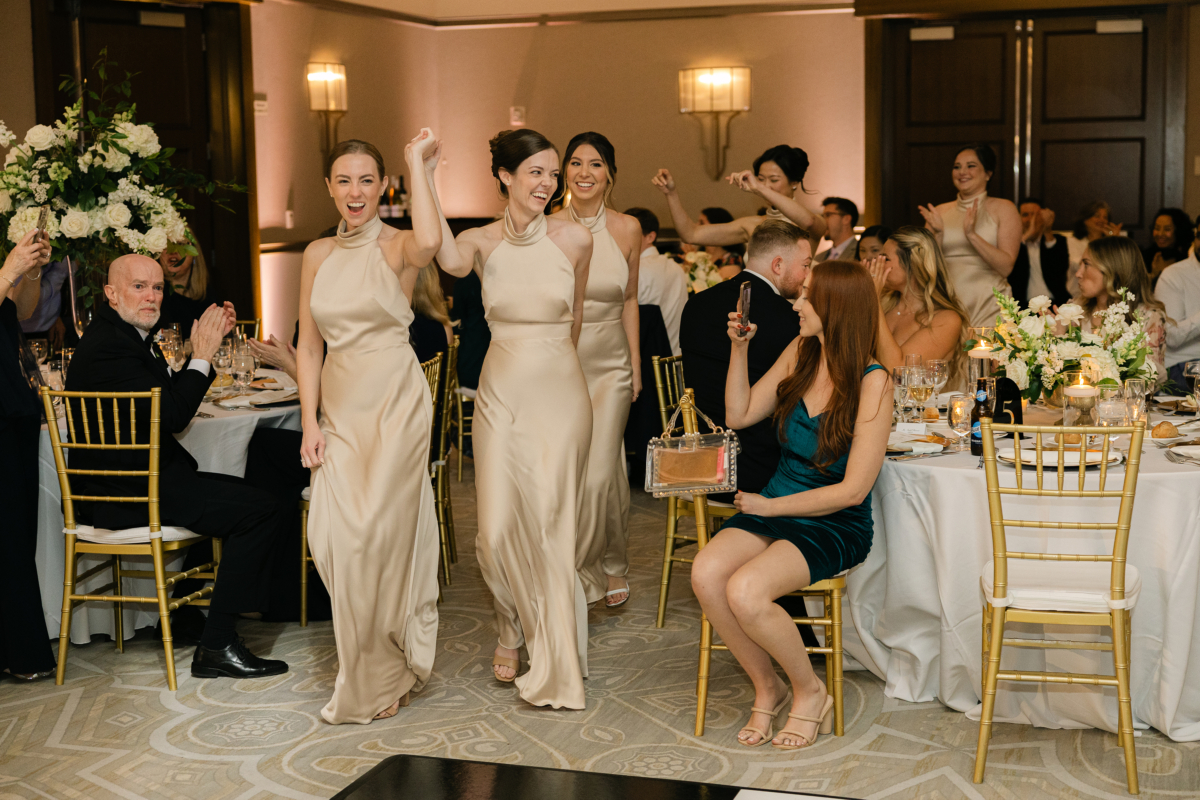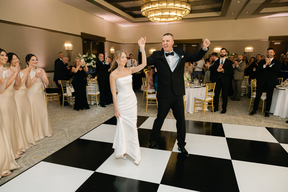 From first glance, the night could be described as class, elegance, and sophistication. However, the sweet exchanges between the couple and the lively dance moves that filled the reception floor, brought an element of true intimacy into the couple’s charming dynamic. After the first dance between Laura and Kevin, their loved ones joined them for a night to let loose and celebrate the newly married couple. The energy felt throughout the room was truly magnetic and could convince anyone to join in the fun. From the secret dance moves of the guests previously concealed when sitting in their seats to the energizing music of the DJ, the party tied everything together in an unforgettable way.