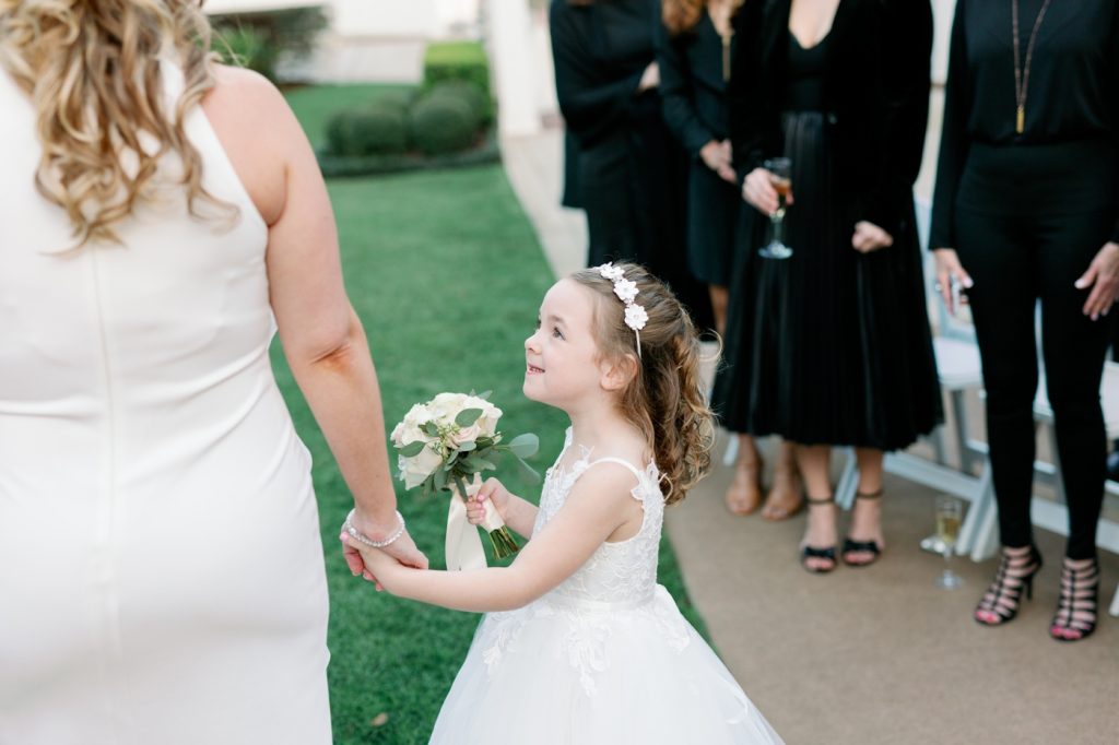 What guests didn’t know is that they were actually at Mere and Bran’s wedding! An announcement was made to let everyone know that there was a wedding about to happen, and everyone in attendance was equally shocked as they were excited! There was an intimate ceremony space set up while the couple went and changed into their gown and tux. Meredith’s daughter Madi also changed into her wedding attire and joined her mom in walking down the aisle. There wasn’t a single dry eye when Brandon knelt down and said his own vows to Madi which came with a ring for her as well (we are still tearing up). Meredith and Brandon were able to celebrate their love with all of their closest family and friends. After the surprise ceremony everyone danced the night away with a live band.